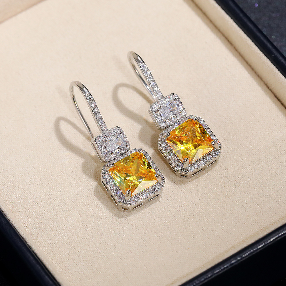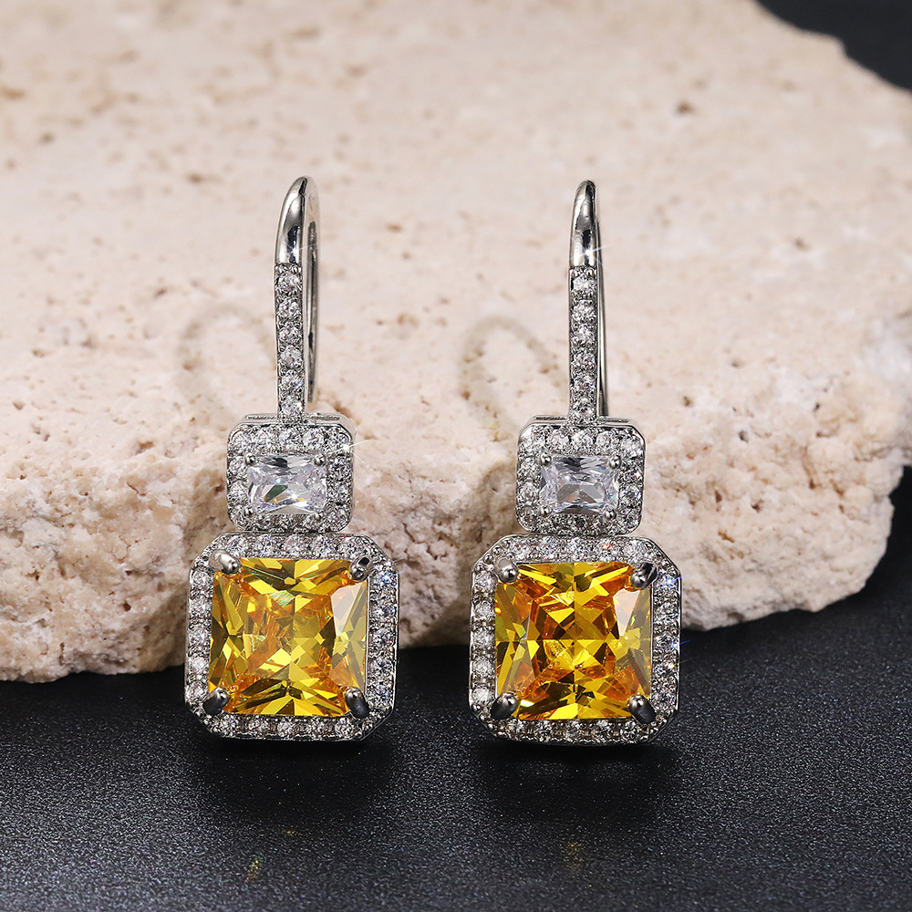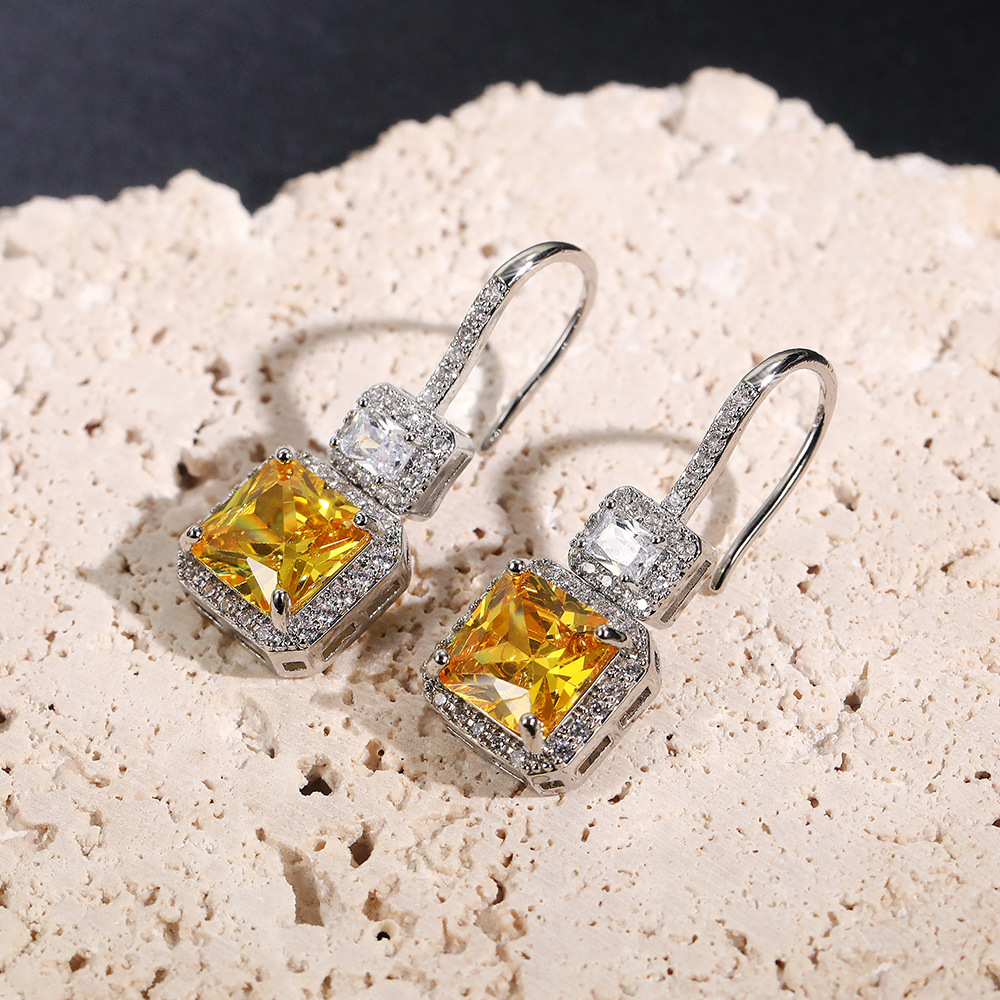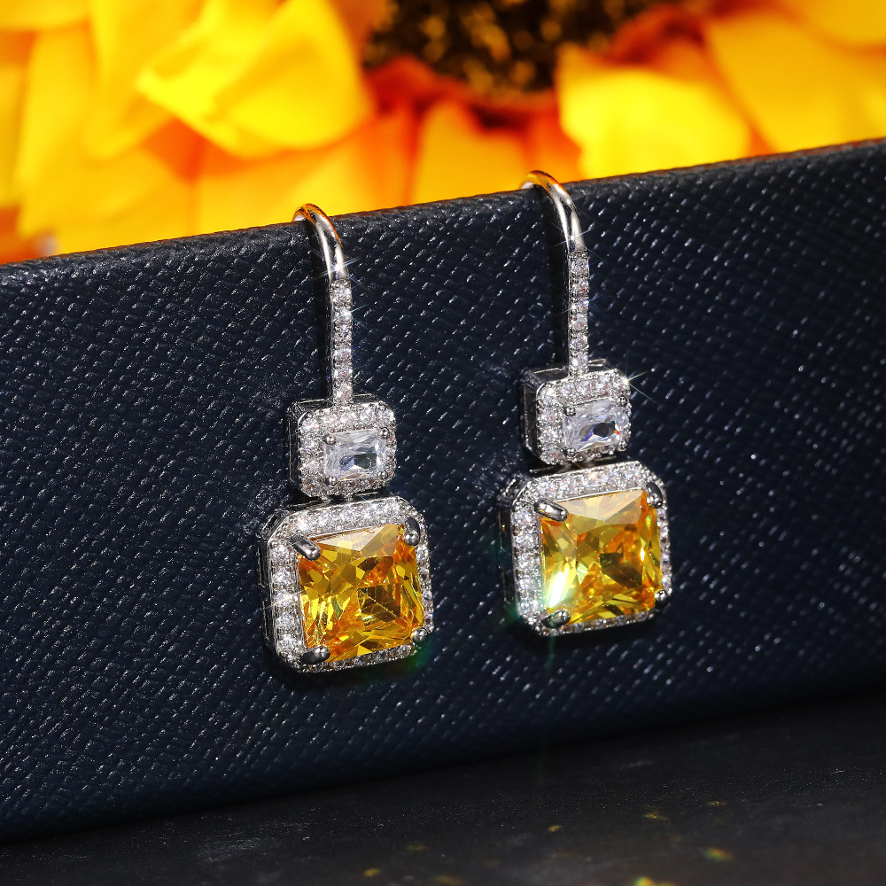 Hot-selling bridal earrings, luxurious and fashionable yellow diamond zircon earrings, retro and high-end simple ear hooks