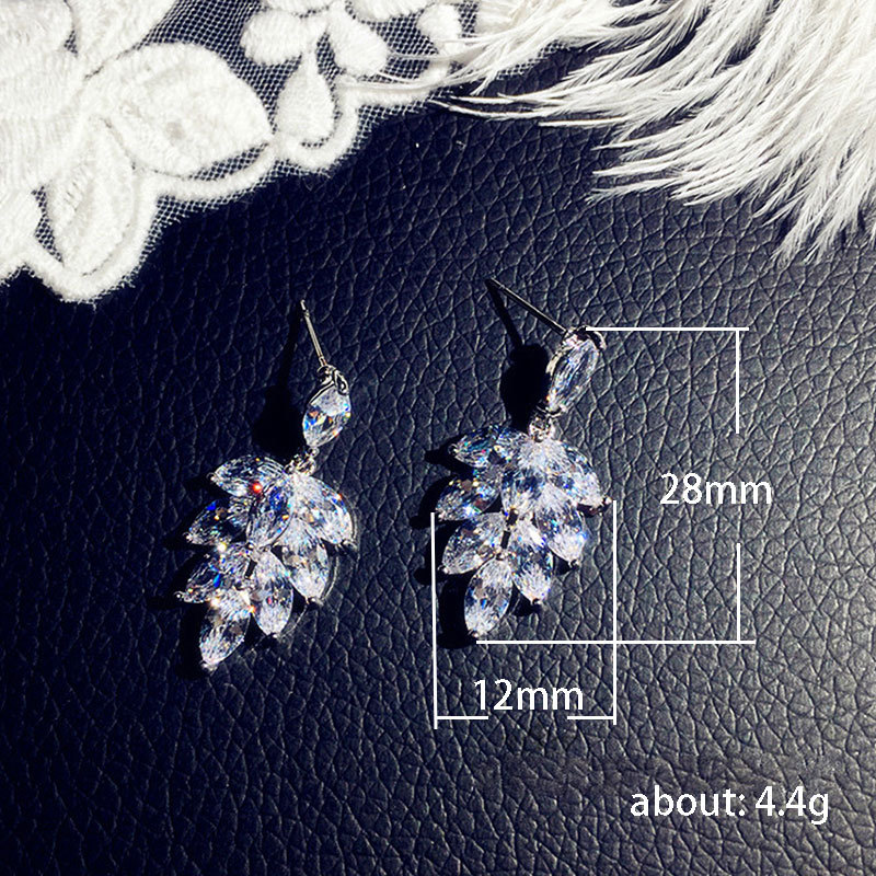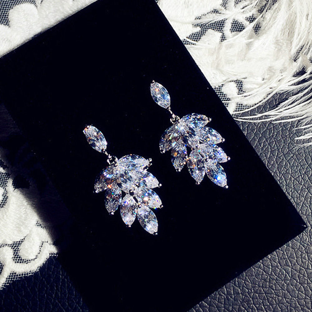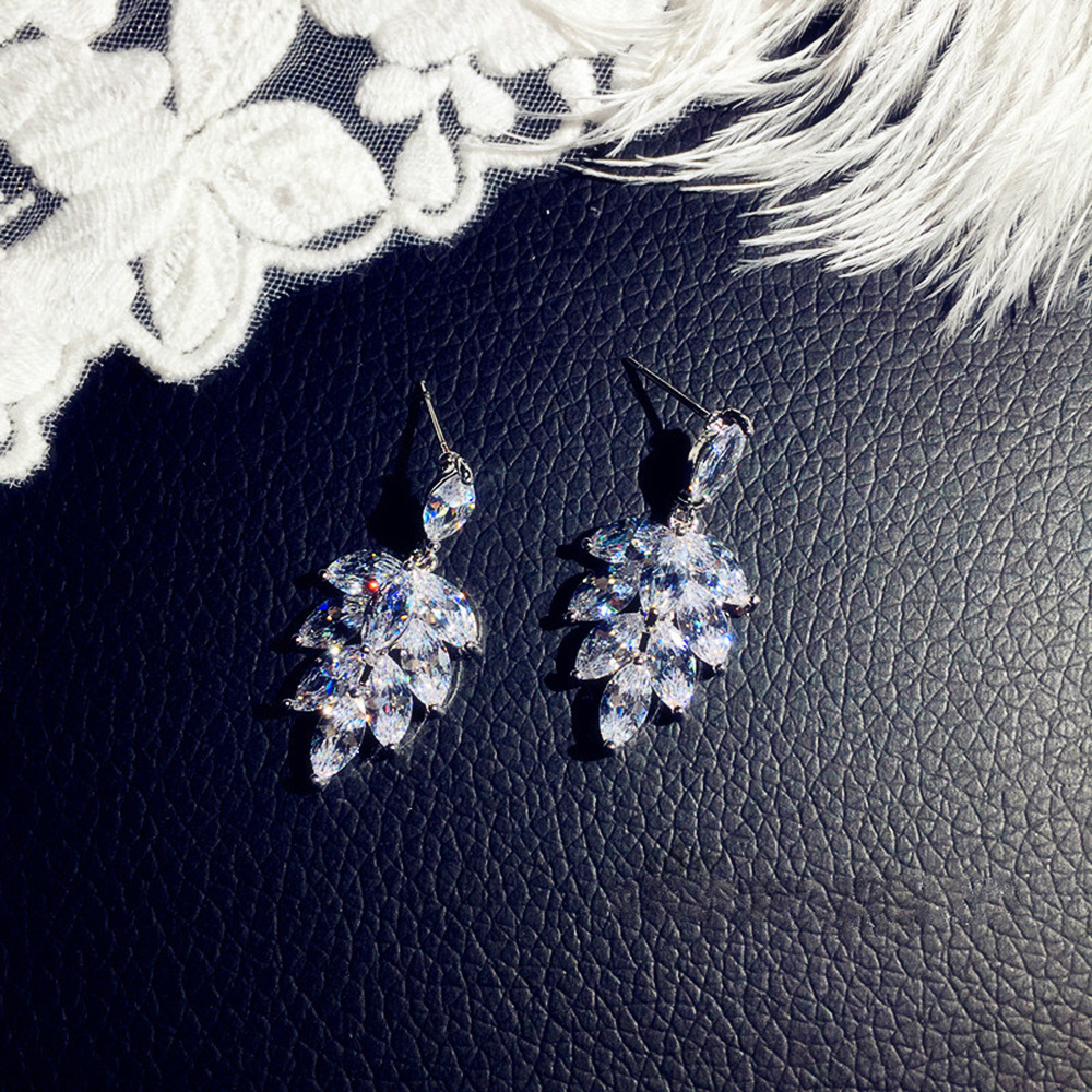 Hot selling bridal leaf drop earrings European and American simple fashion zircon long wedding dress earrings for women