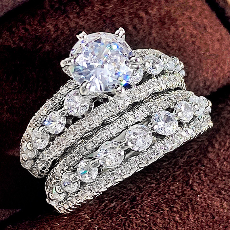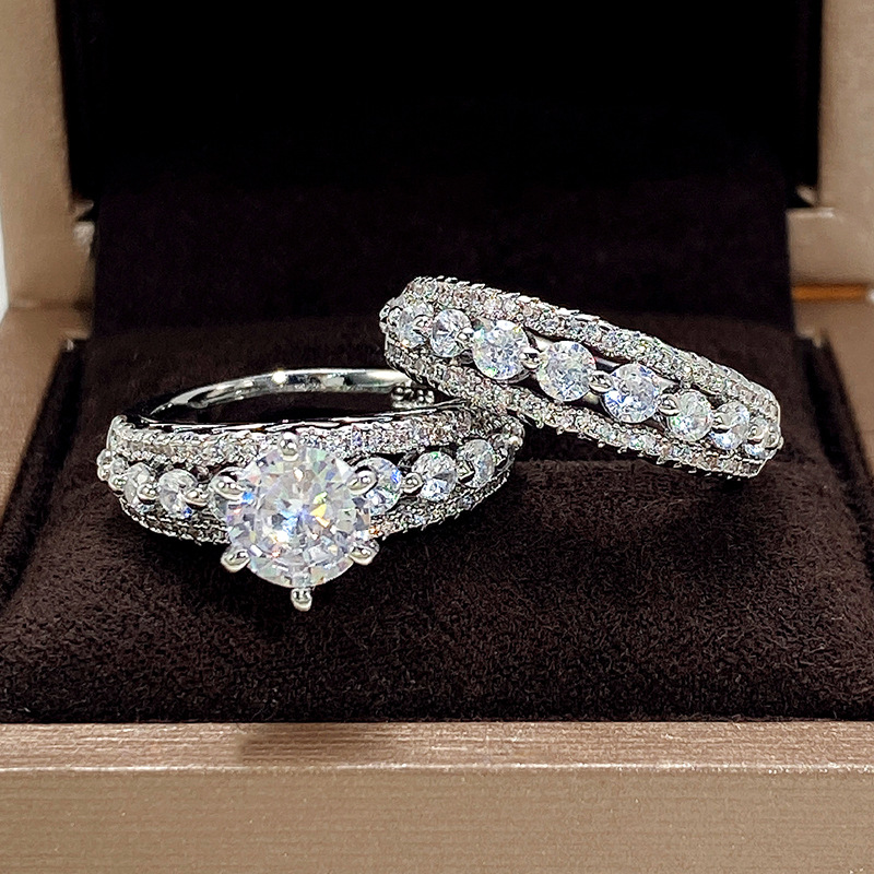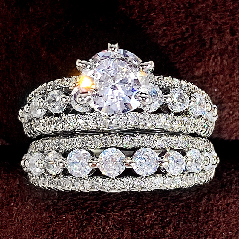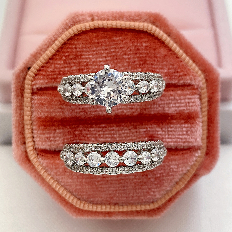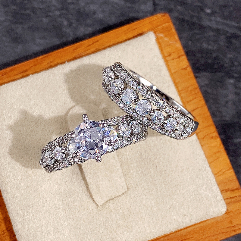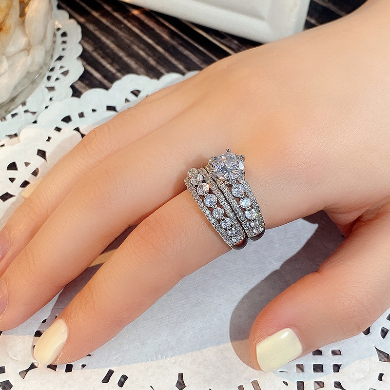 Micro-inlaid celebrity style classic all-match popular ring six-claw zircon wedding ring European and American style light luxury ring