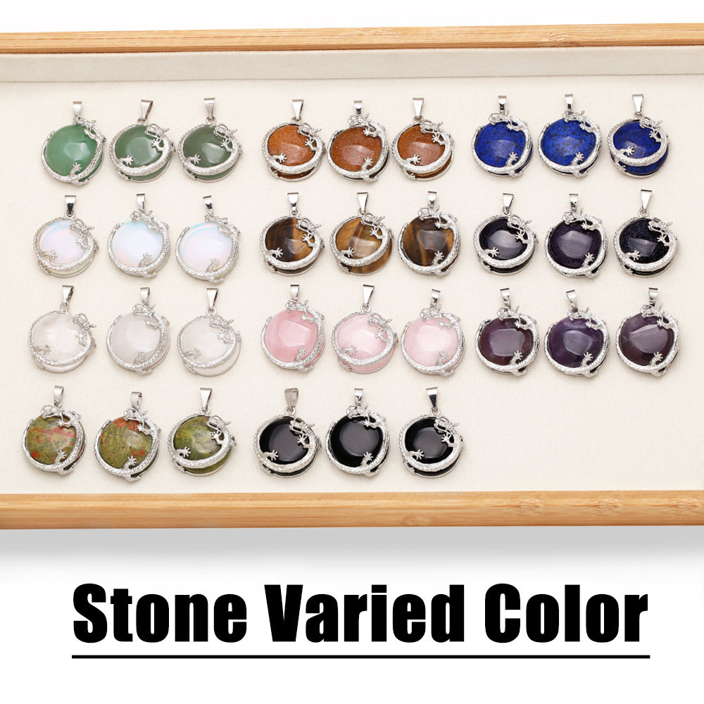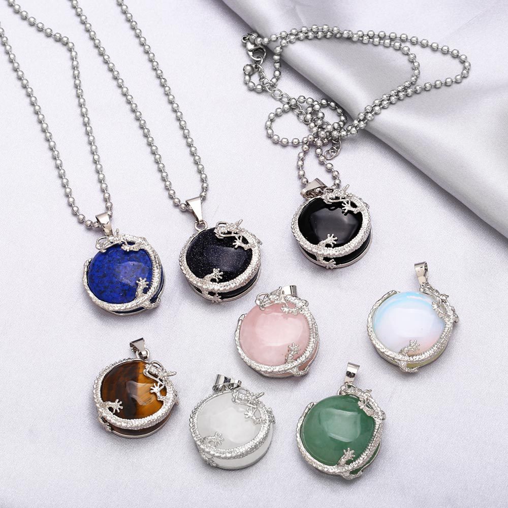 Hot selling Chinese style crystal agate necklace in Europe and America, creative personality Chinese dragon gemstone pendant nkb617