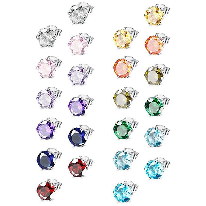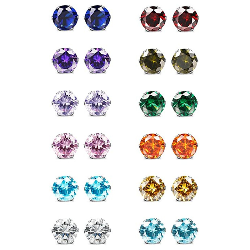 Hot selling classic six-claw colorful zircon earrings for men and women, mini colored gemstone earrings