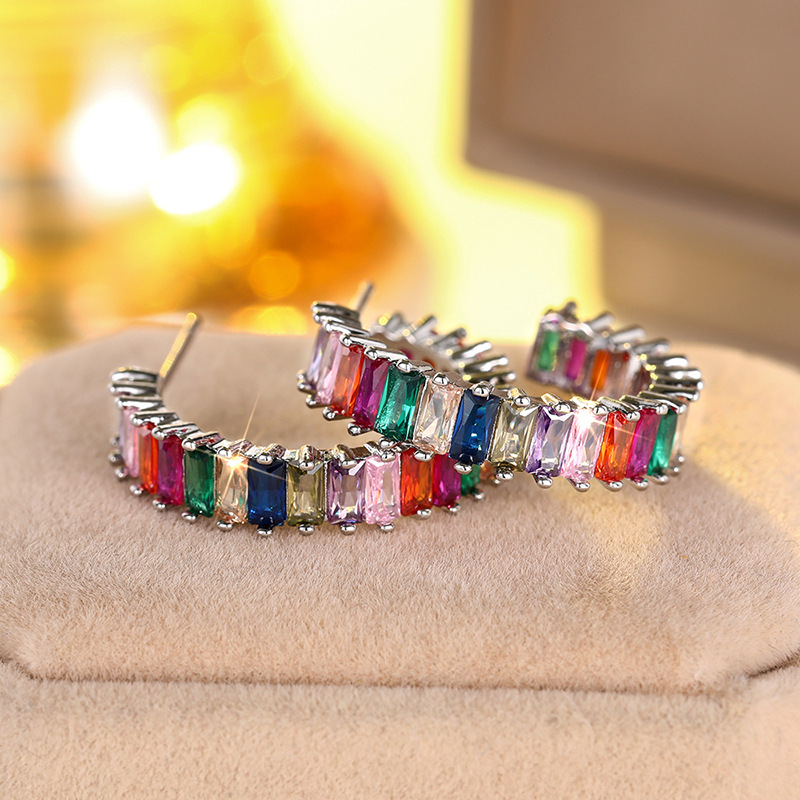 New European and American fashion 26 letters earrings original personality inlaid with colored zircon letter earrings erw62
