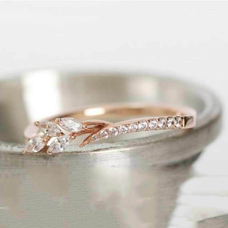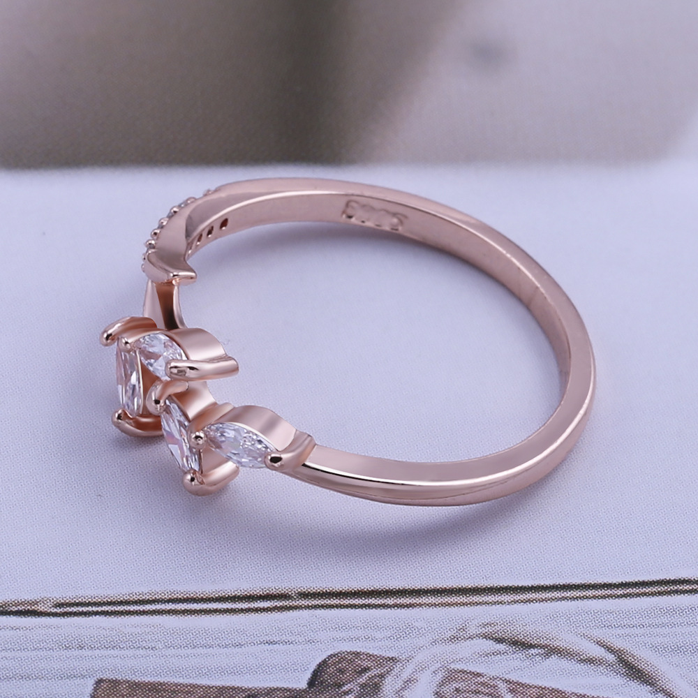 Hot-selling copper jewelry, European and American luxury floral branch-shaped ring for women, inlaid with marquise-shaped zircon party accessories