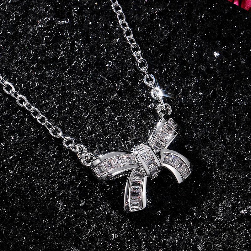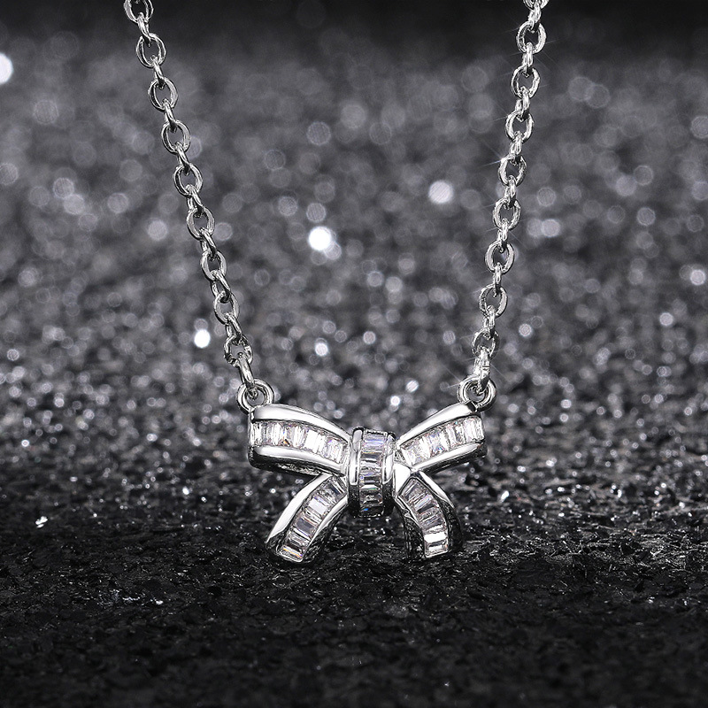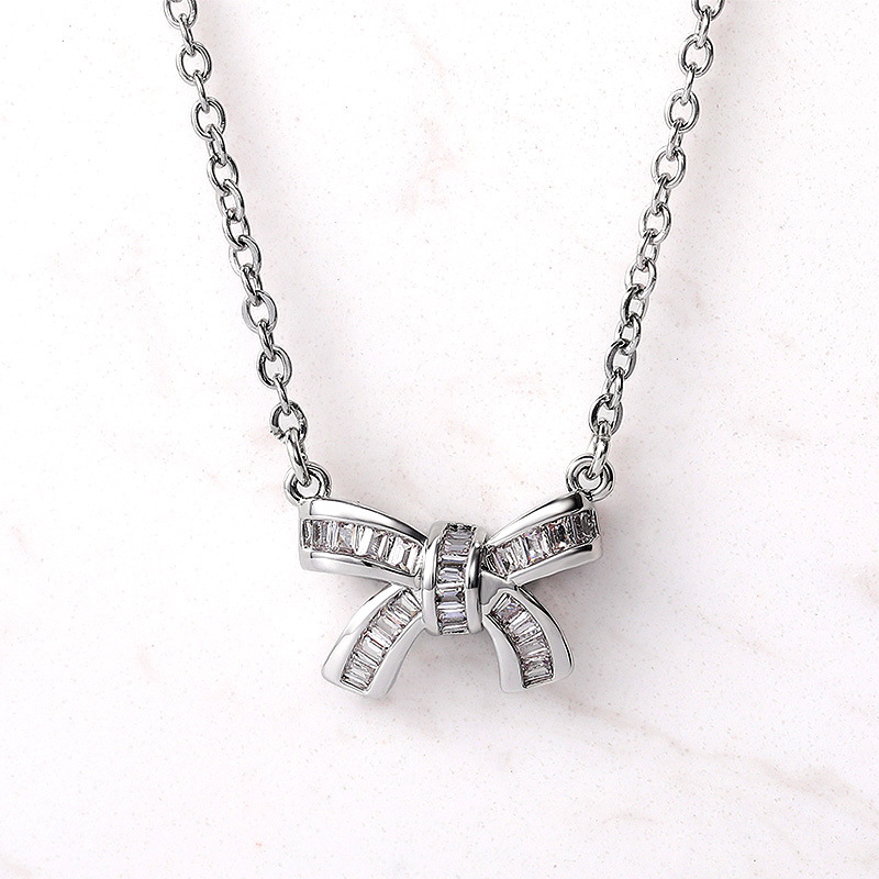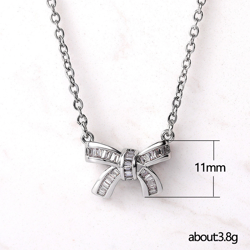Hot selling copper plated platinum bow zircon necklace elegant simple manufacturer wholesale necklace