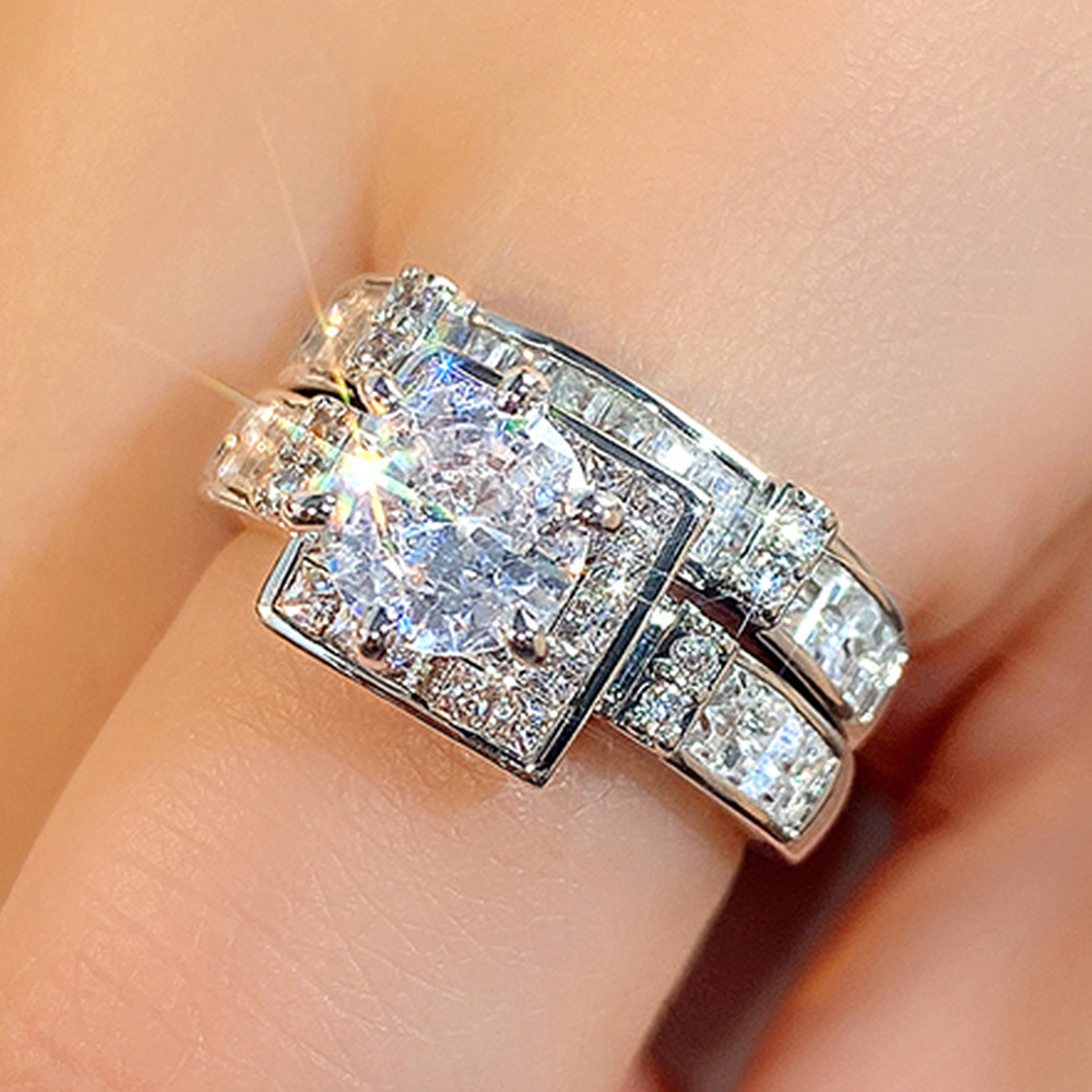 Classic four-claw imitation zircon micro-inlaid ring women's double row two-color twist arm ring engagement wedding ring women