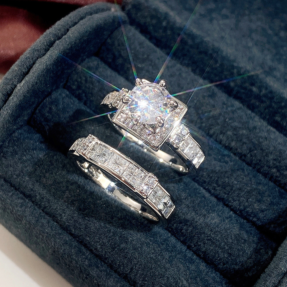 Hot selling new princess square ring European and American hot style inlaid zircon women's jewelry engagement proposal ring