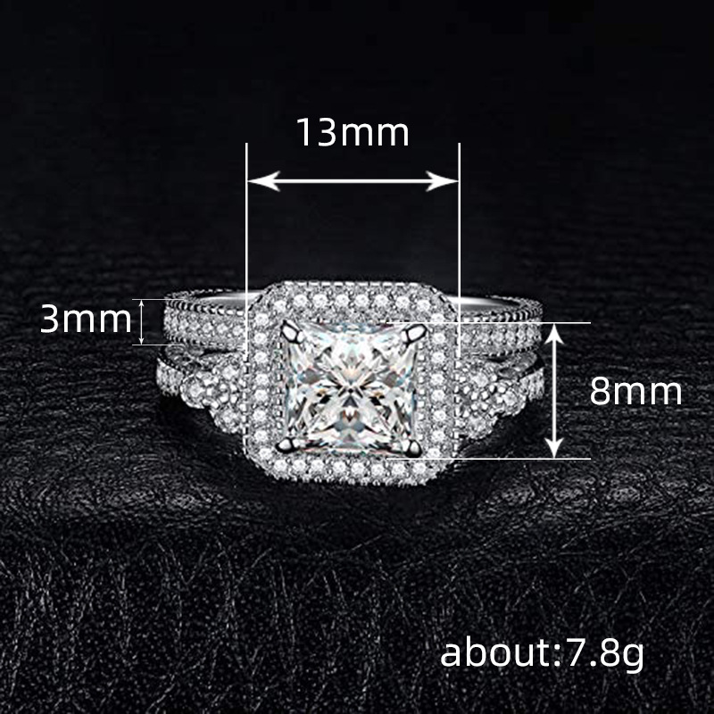 Hot selling new princess square ring European and American hot style inlaid zircon women's jewelry engagement proposal ring