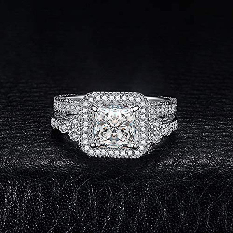 Hot selling couple ring princess fashion geometric square ring bridal wedding ring