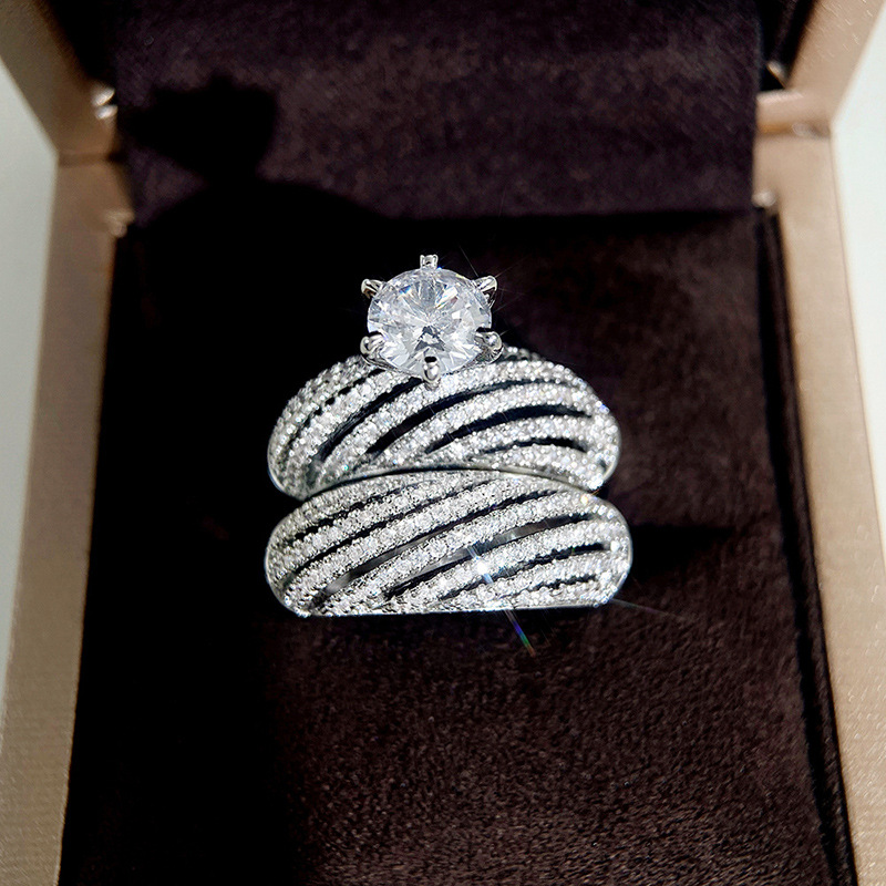 Micro-inlaid celebrity style classic all-match popular ring six-claw zircon wedding ring European and American style light luxury ring