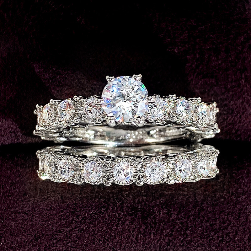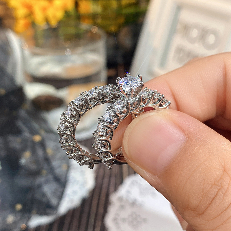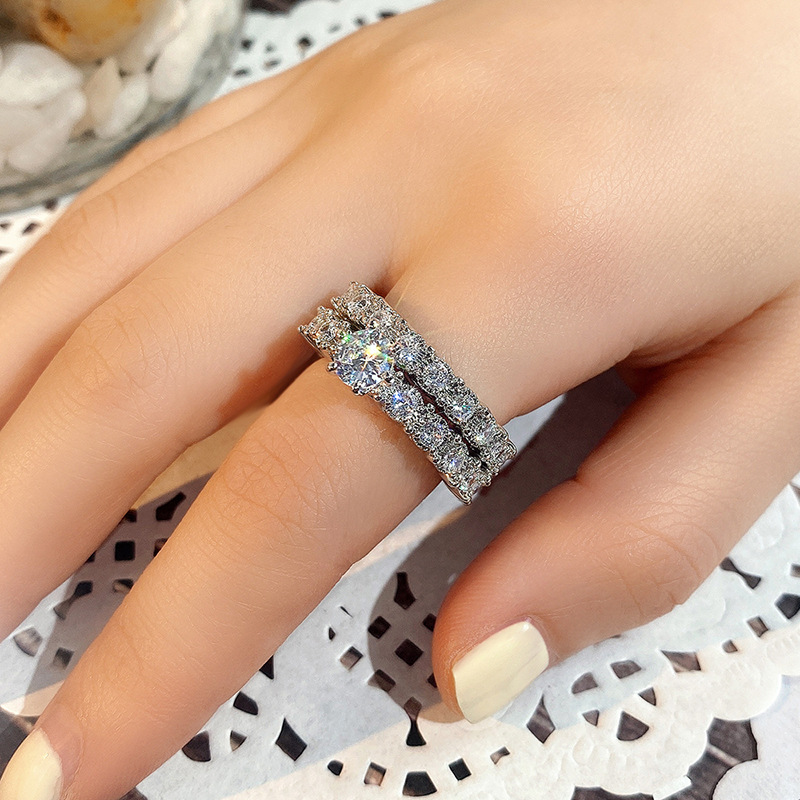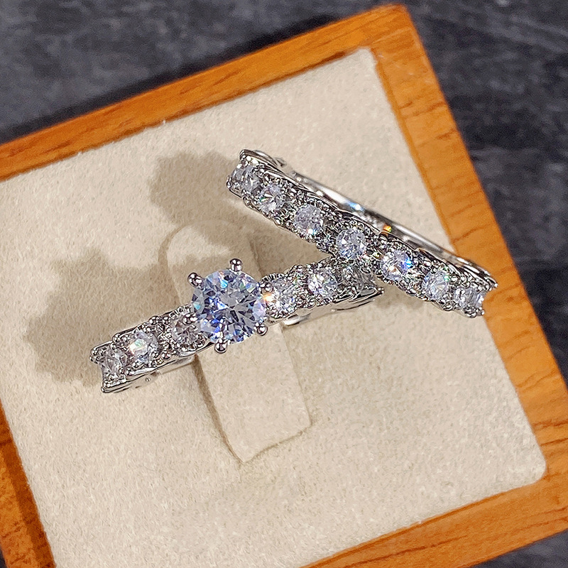 Micro-inlaid celebrity style classic all-match popular ring six-claw zircon wedding ring European and American style light luxury ring