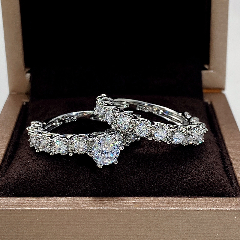 Hot selling couple rings, wedding proposal atmosphere, large zircon ring, elegant bridal accessories
