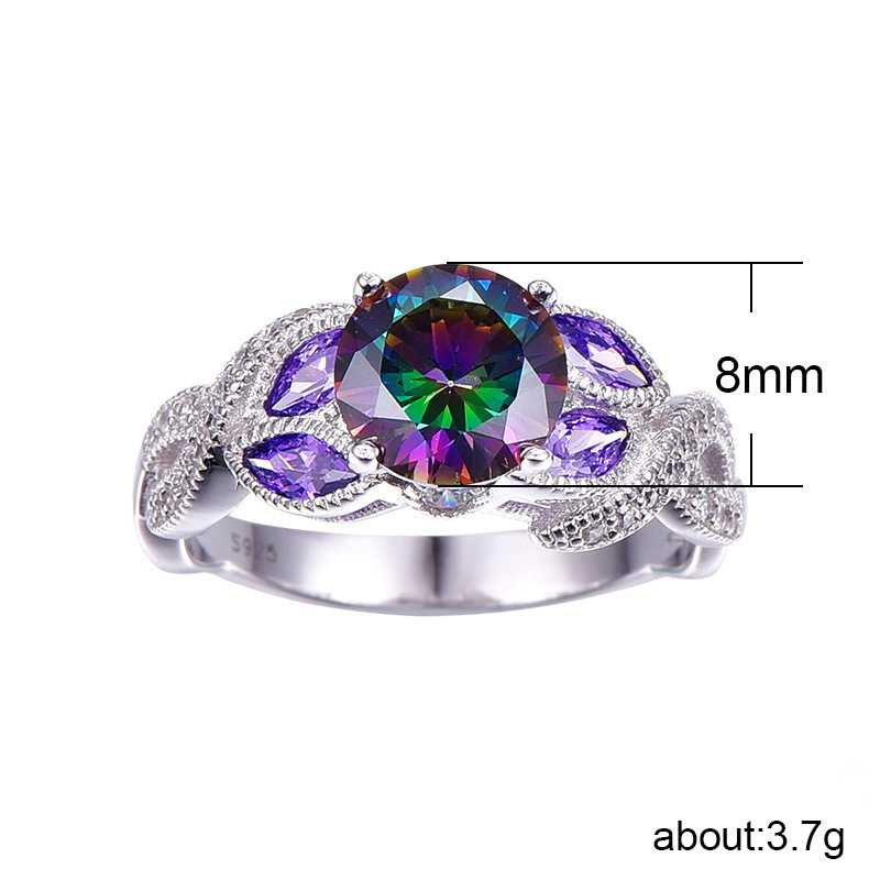 Hot selling creative colorful teardrop oval zircon women's ring copper plated silver exquisite jewelry