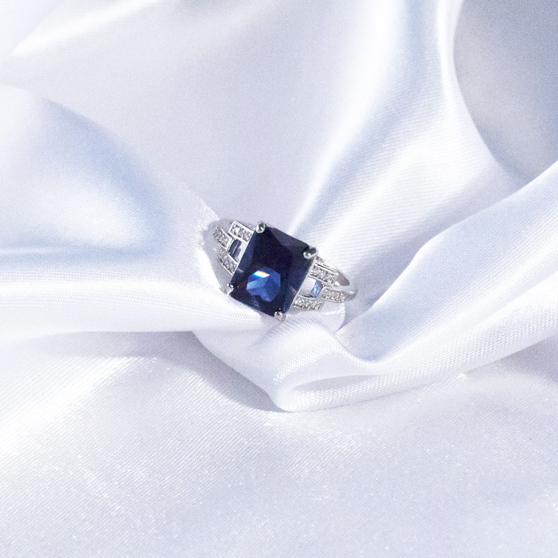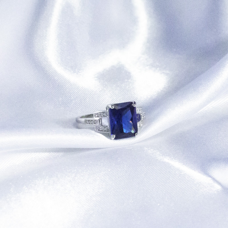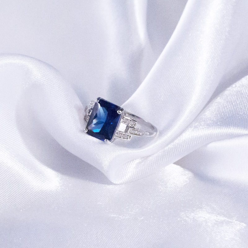 Hot selling creative simple blue rectangular zircon ring female fashion gorgeous cocktail accessories