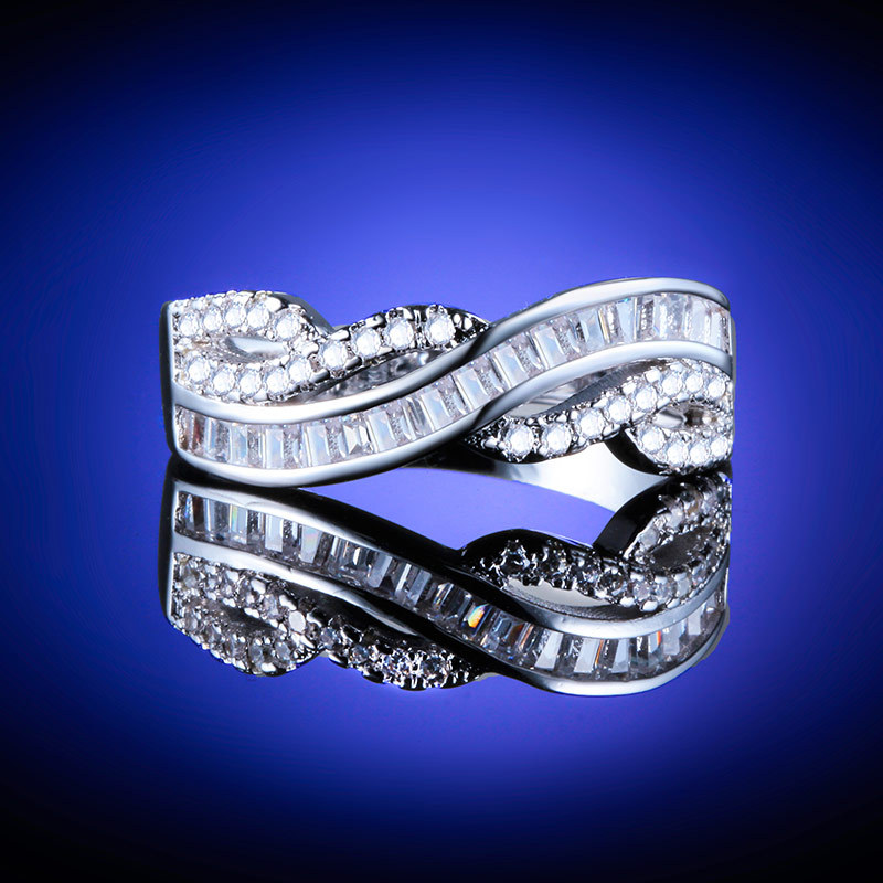 Classic four-claw imitation zircon micro-inlaid ring women's double row two-color twist arm ring engagement wedding ring women