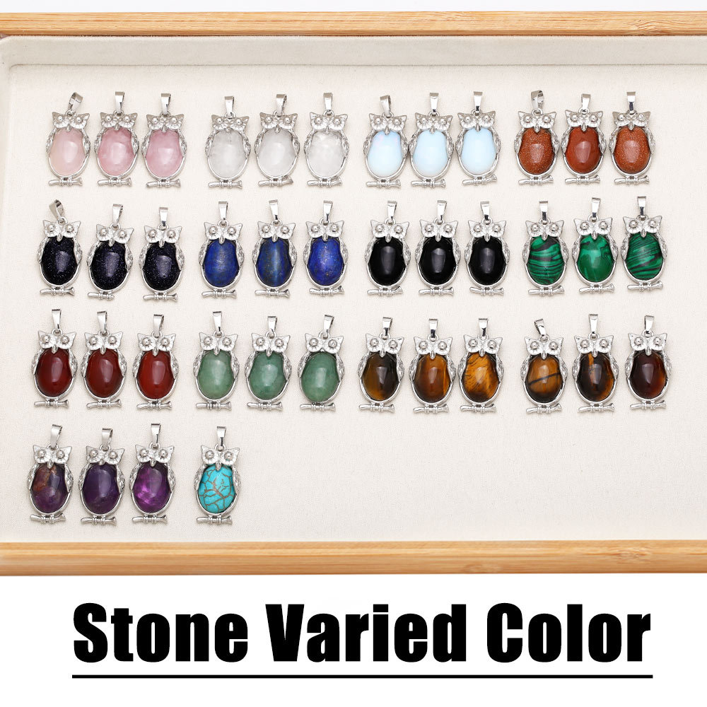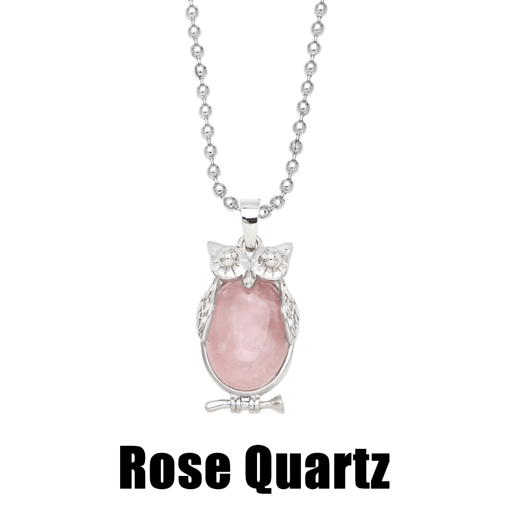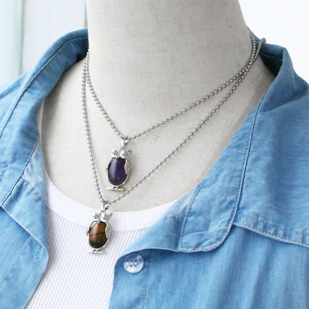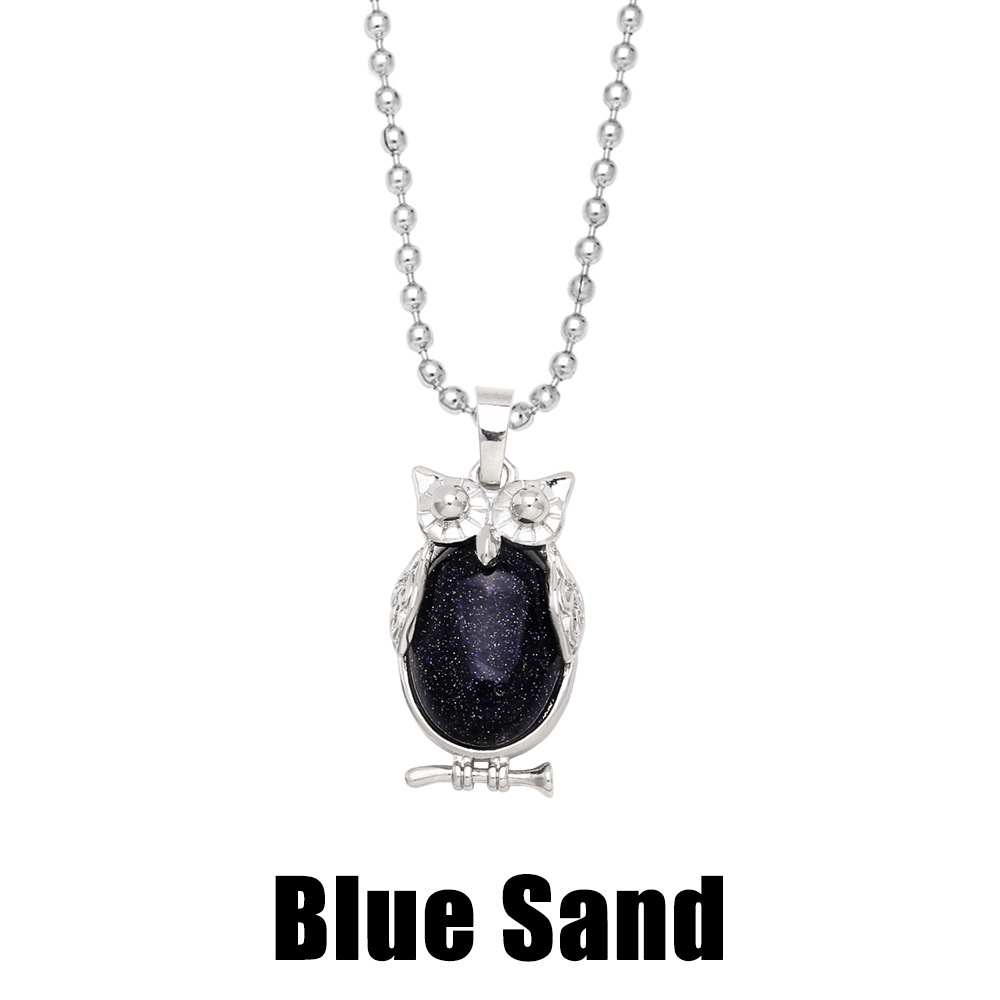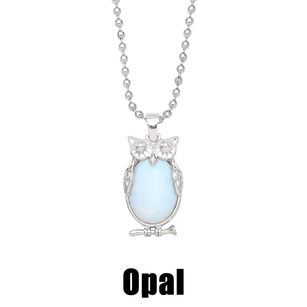 Hot selling crystal agate owl necklace retro punk style owl pendant silver sweater chain nkb660