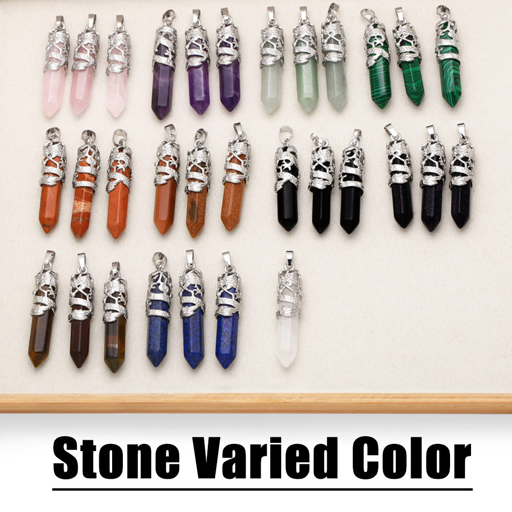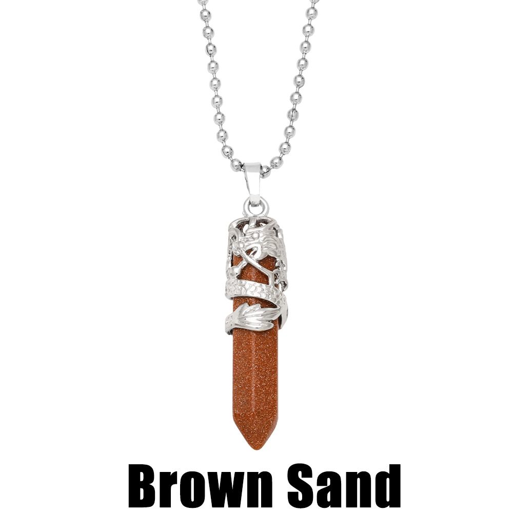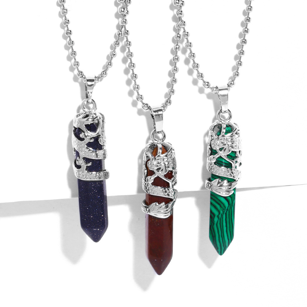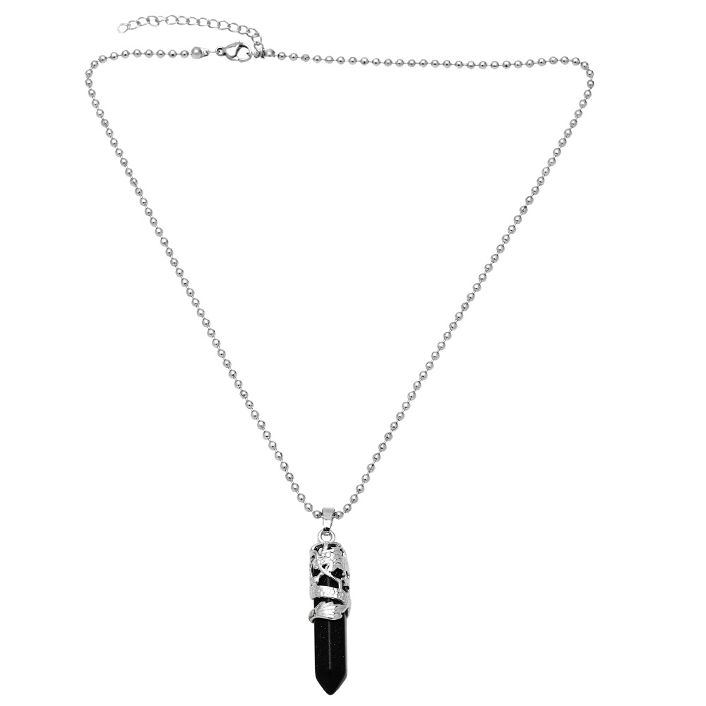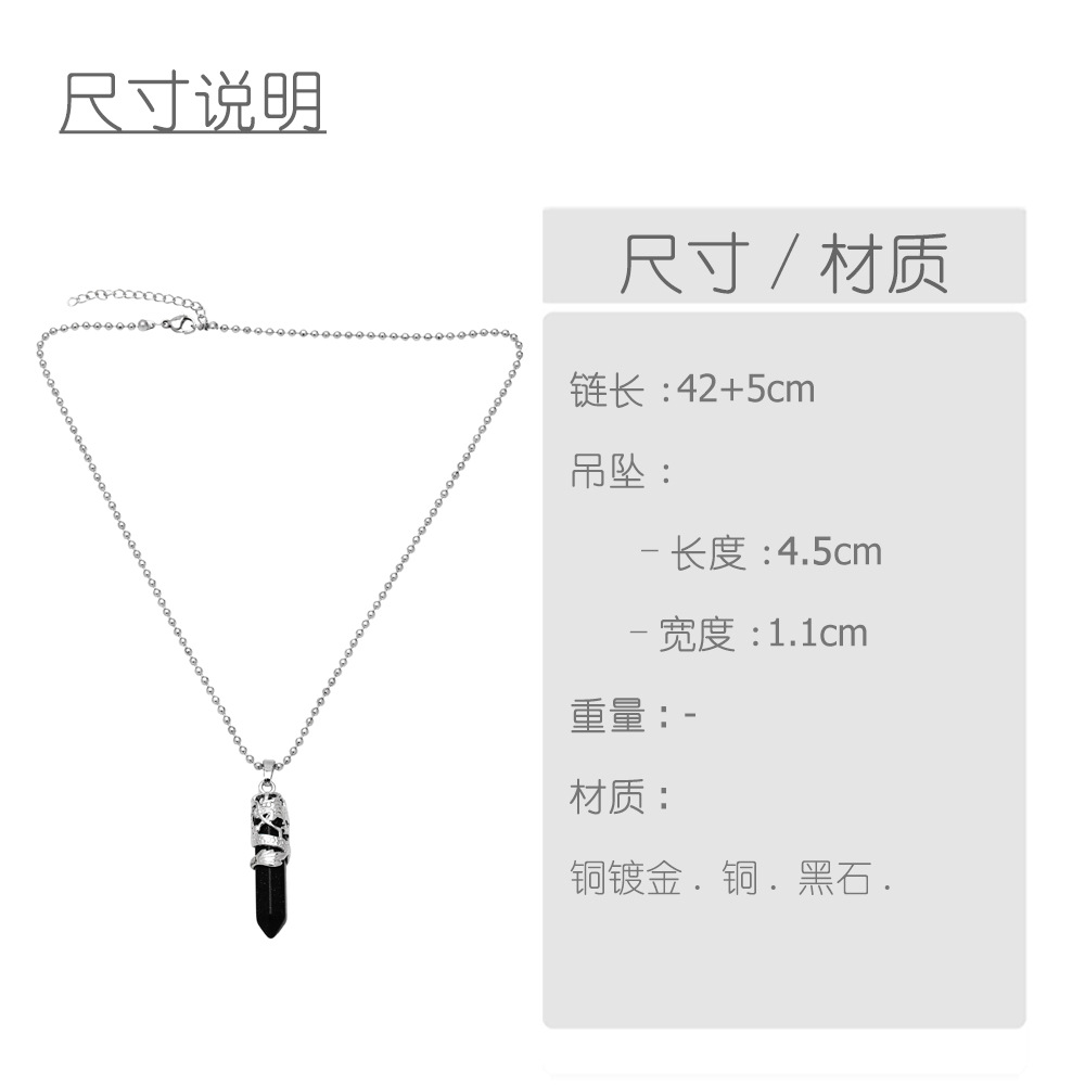 Hot selling crystal agate single pointed hexagonal column pendant bullet necklace European and American jewelry wholesale nkb579