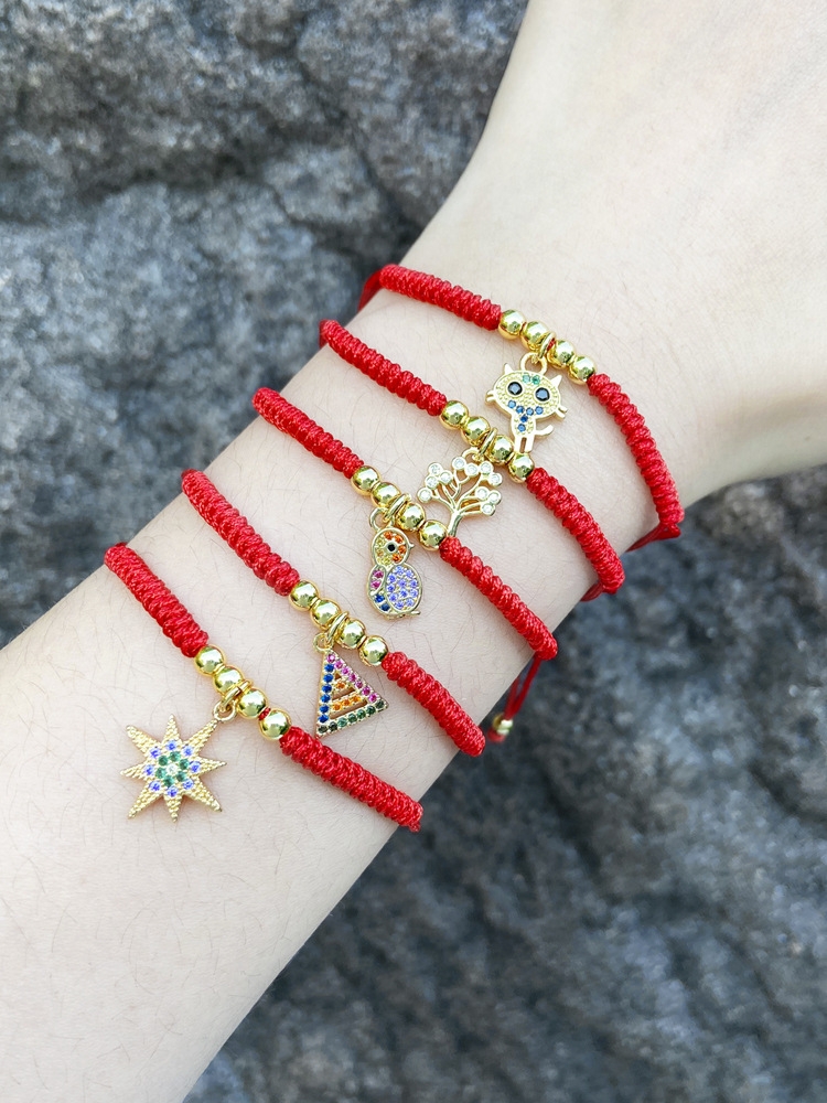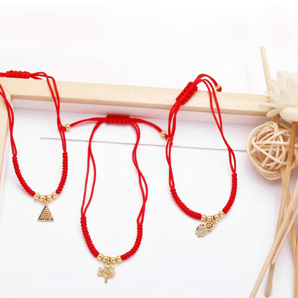 Hot selling cute kitten red string bracelet fashion triangle tree of life pendant bracelet brk84