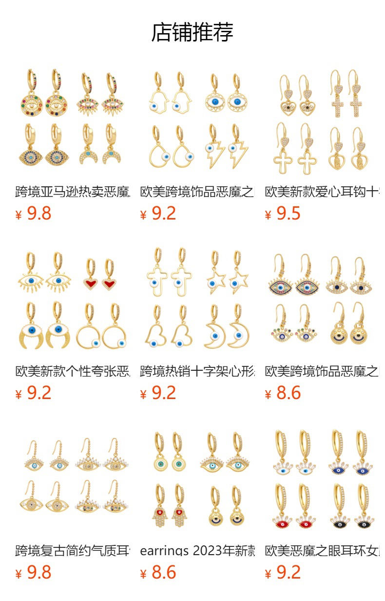 Hot selling devil eye earrings female niche personality European and American retro sun and moon earrings earrings ert45