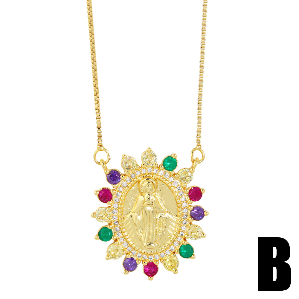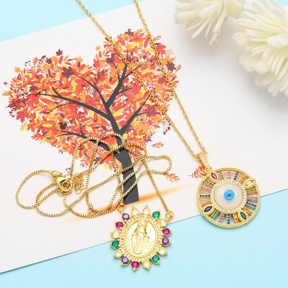Hot selling devil eye necklace in Europe and America, micro inlaid with colored zircon, Virgin Mary pendant, personalized necklace nkb771