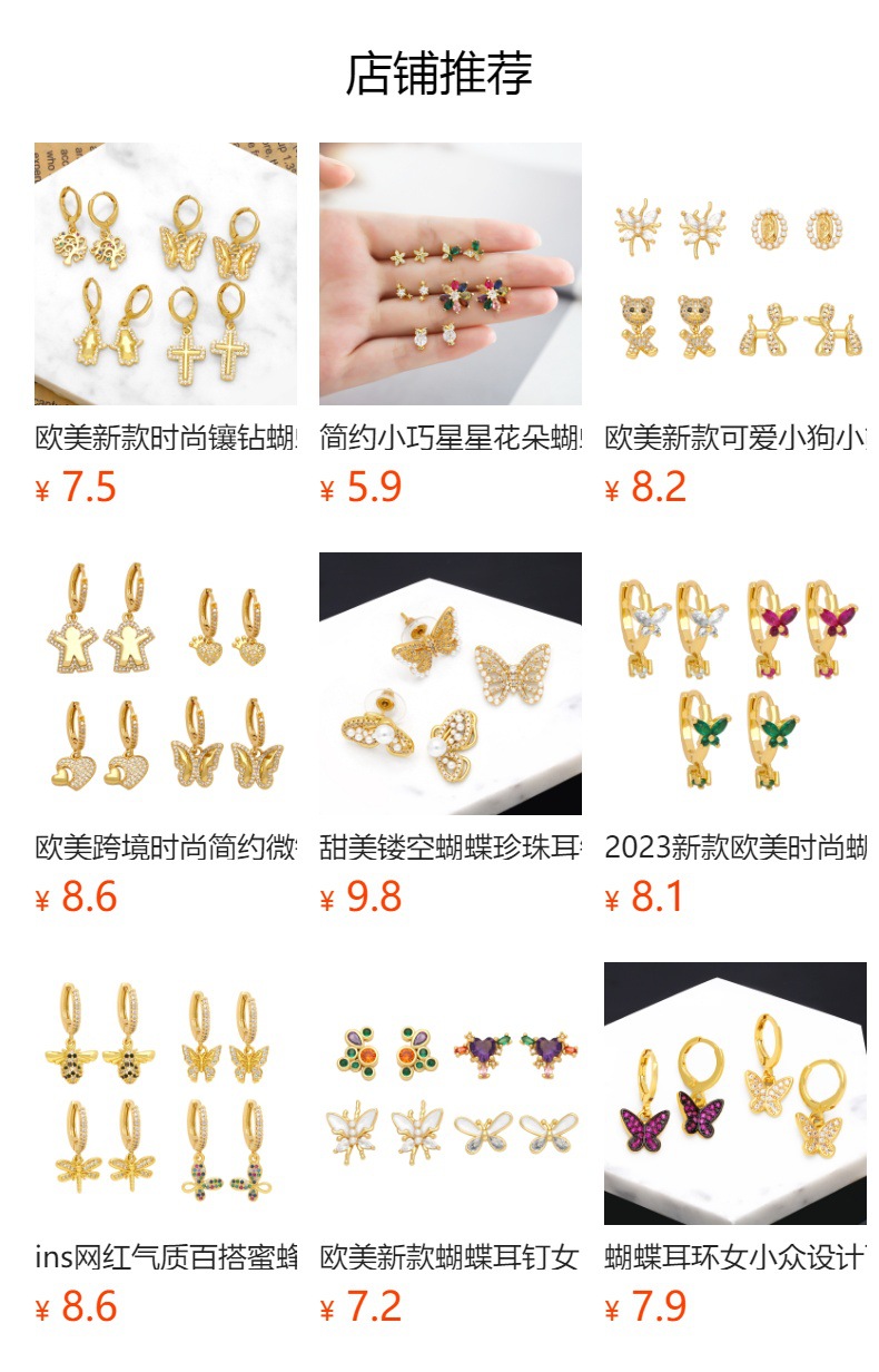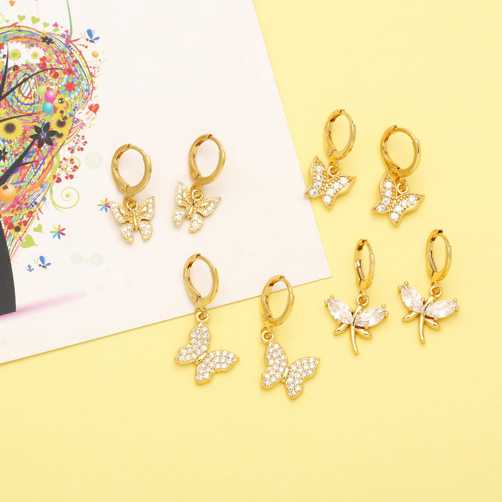 Hot selling diamond butterfly earrings earrings European and American simple temperament butterfly earrings earrings ert90