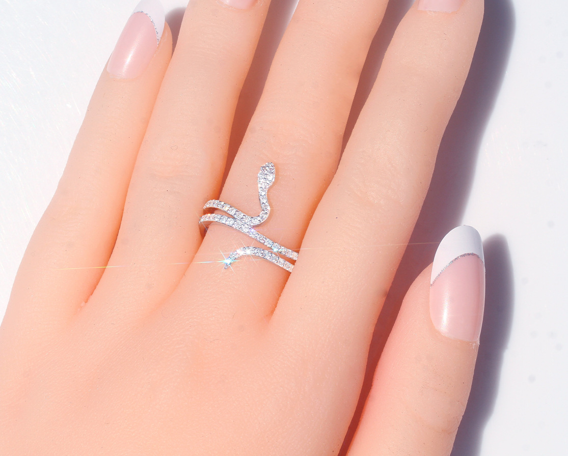 Hot selling diamond micro-inlaid zircon women's snake-shaped ring personalized creative ring jewelry