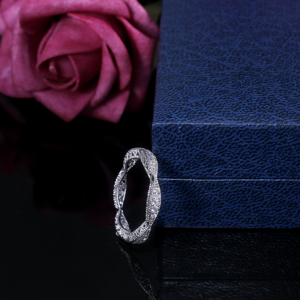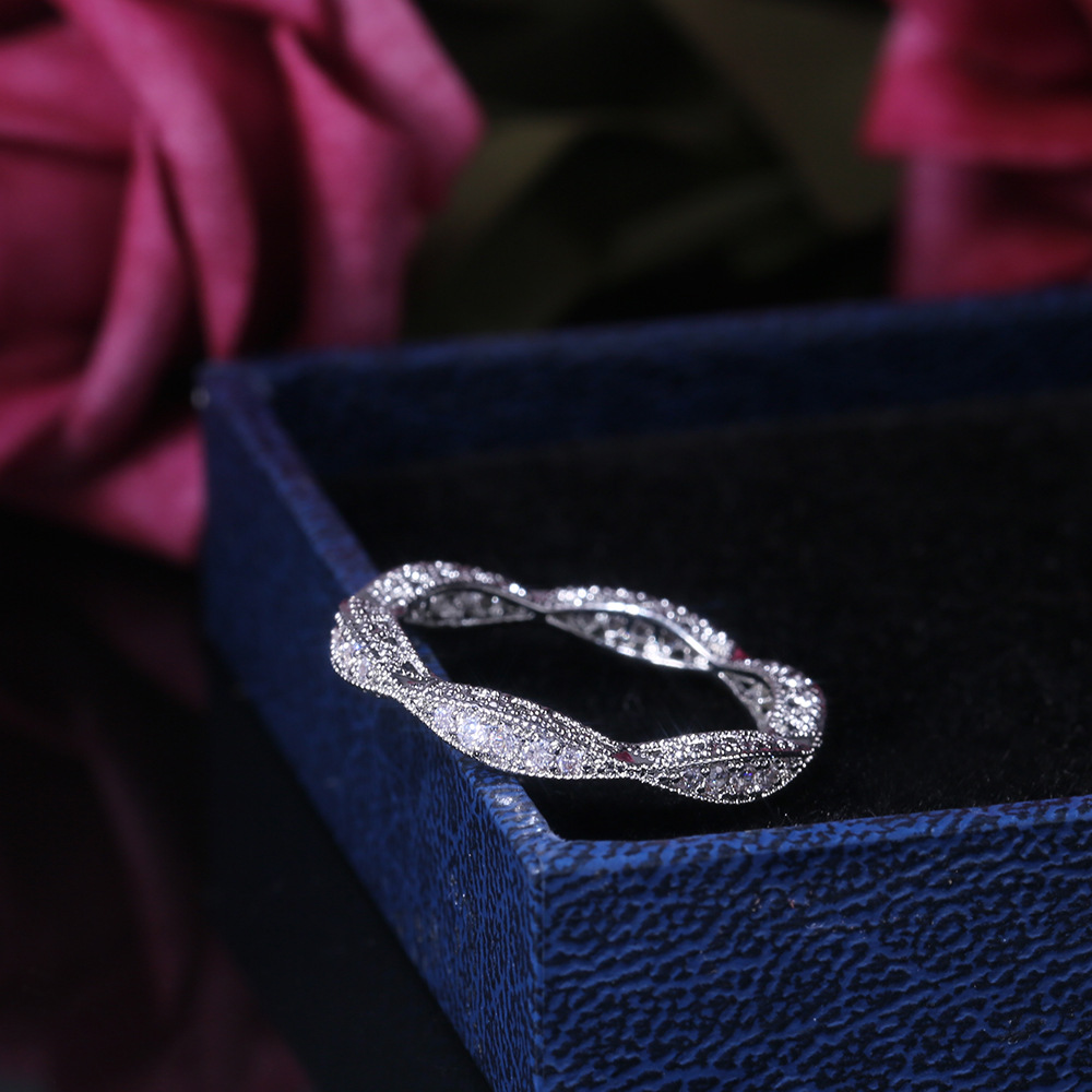 Classic four-claw imitation zircon micro-inlaid ring women's double row two-color twist arm ring engagement wedding ring women