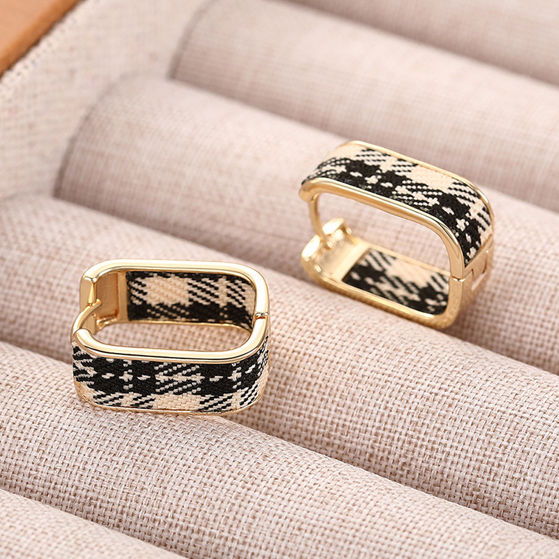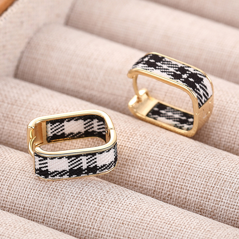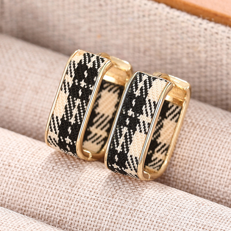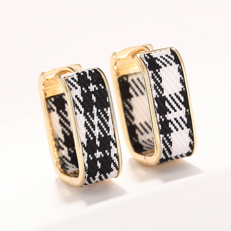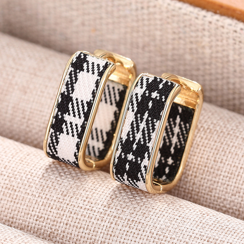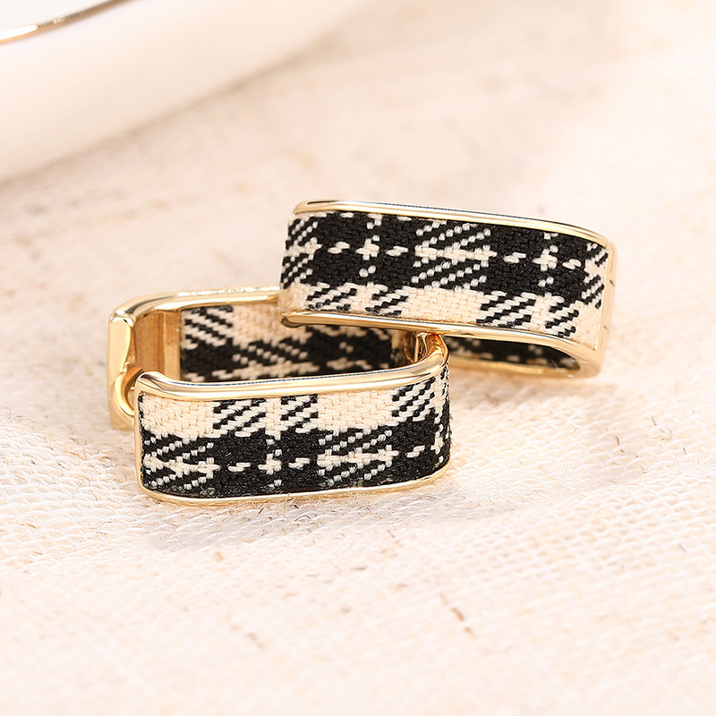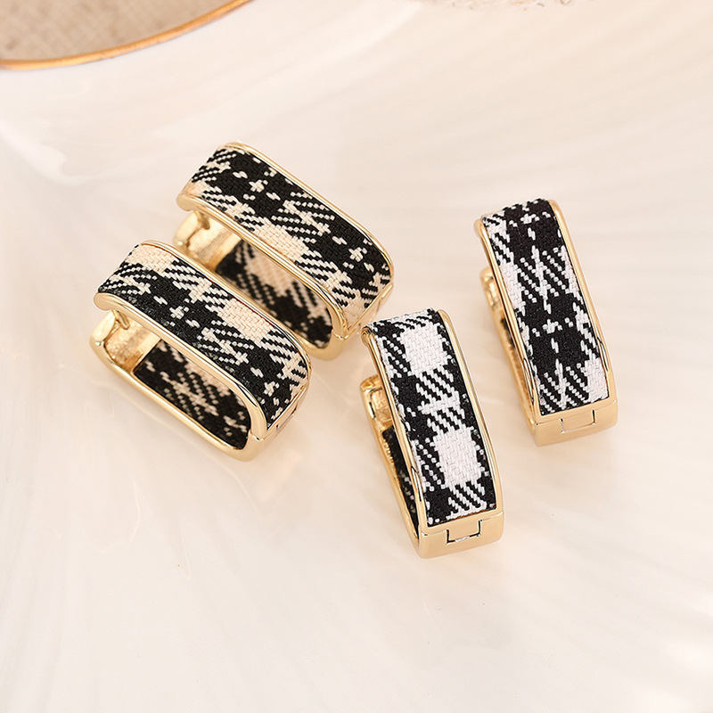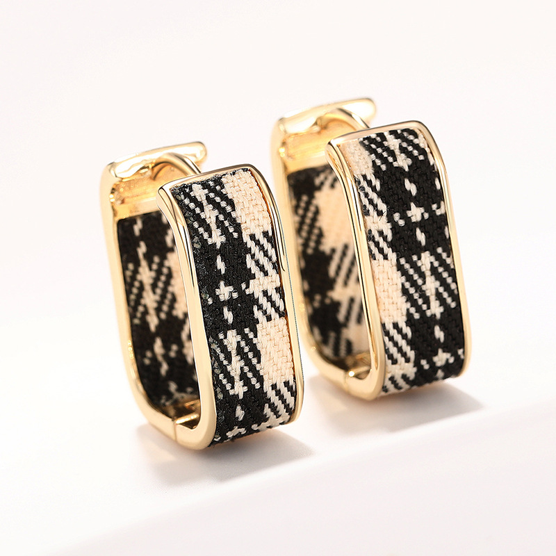 Hot selling ear clips for women in Europe and America, plaid design, small fragrance style, elegant ladies' earrings