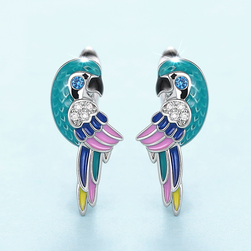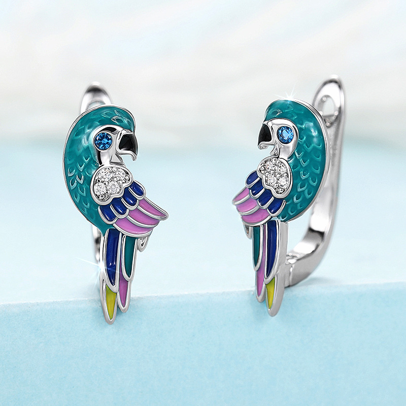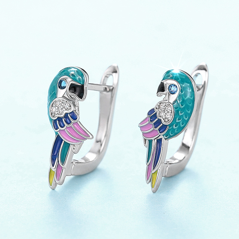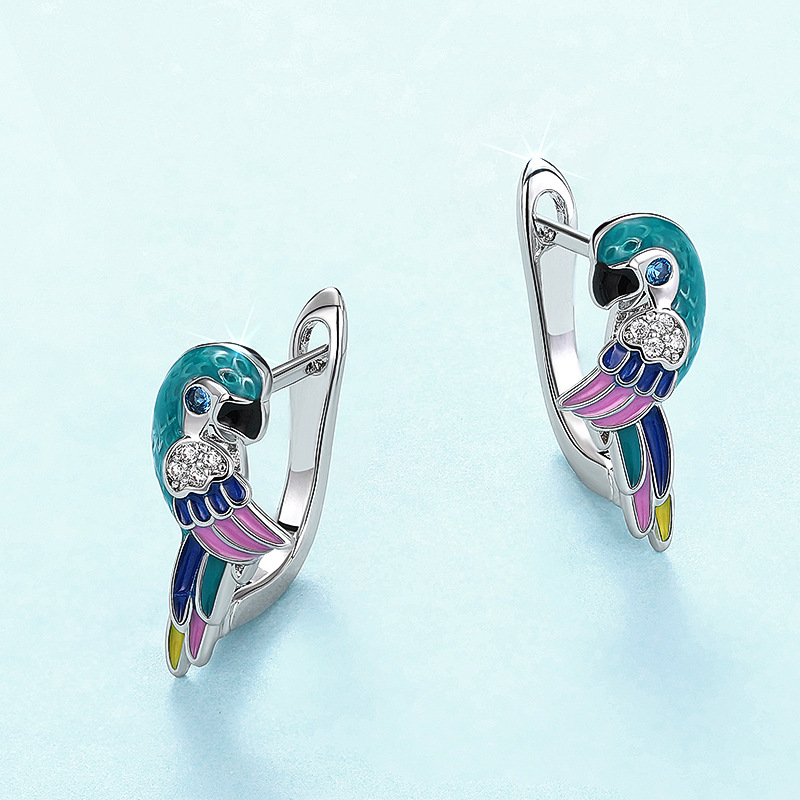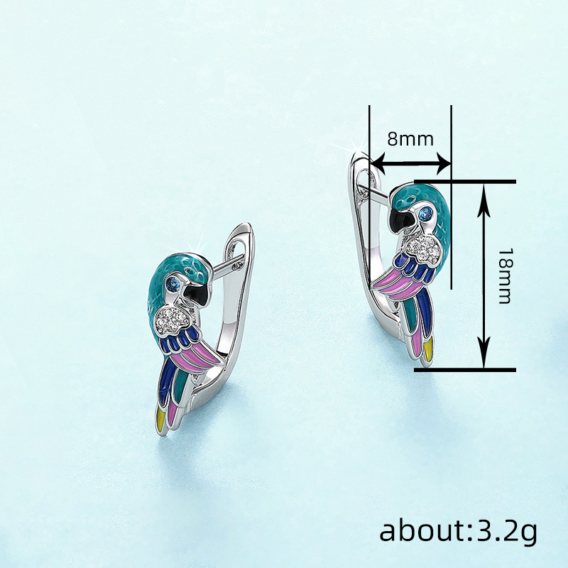 Hot selling ear clips from European and American manufacturers, oil dripping parrot bird jewelry, cute simulated animal zircon style