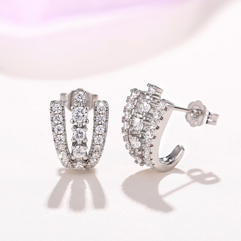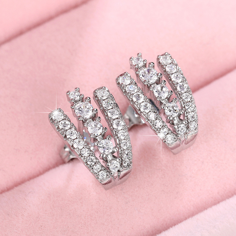 Hot-selling ear clips, super shiny, fully inlaid with cool style, light luxury zircon earrings, fashionable workplace design earrings
