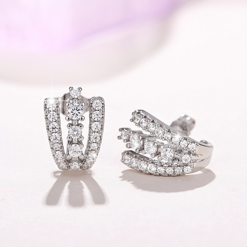 AS jewelry Europe and the United States hot selling double row earrings ladies copper plated real gold inlaid zircon earrings ear bone clip era351