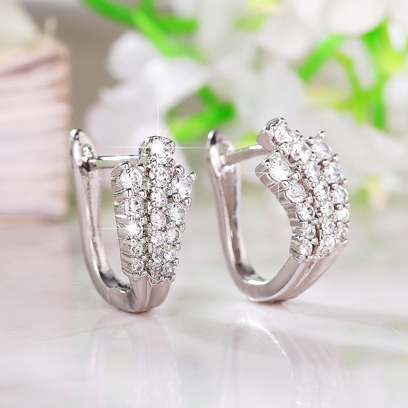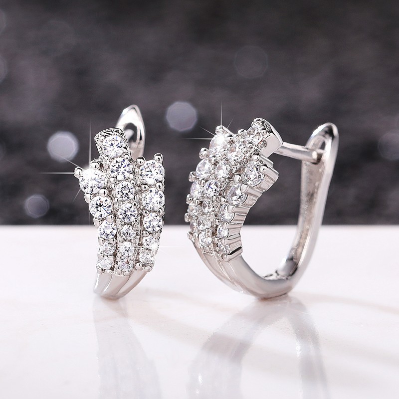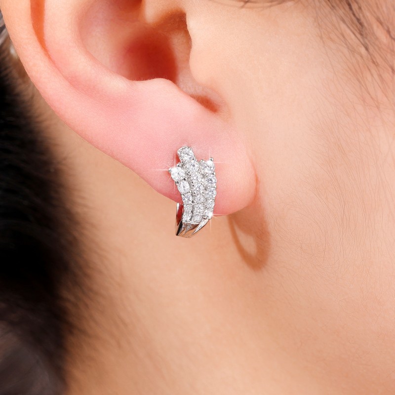 AS jewelry Europe and the United States hot selling double row earrings ladies copper plated real gold inlaid zircon earrings ear bone clip era351