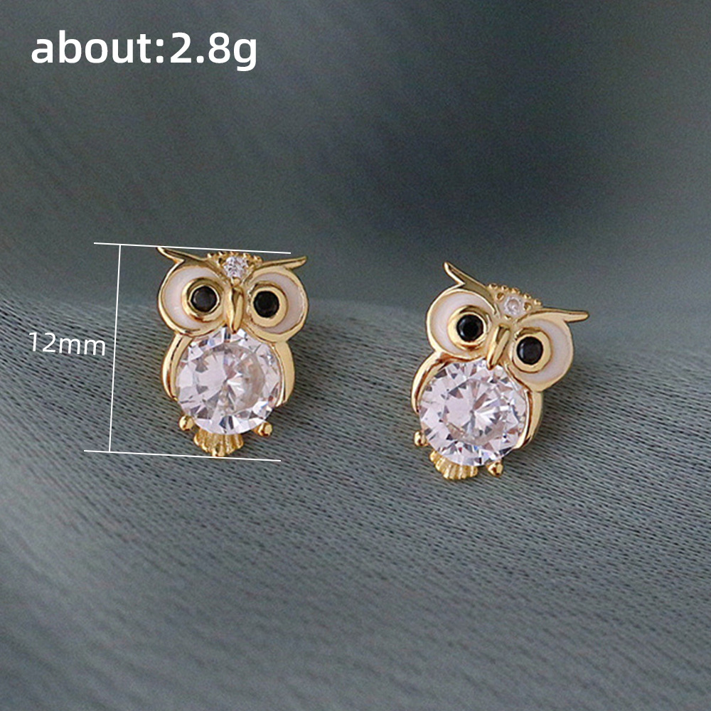 Hot-selling earrings, cute diamond-studded zircon owl earrings, small and exquisite animal earrings for women