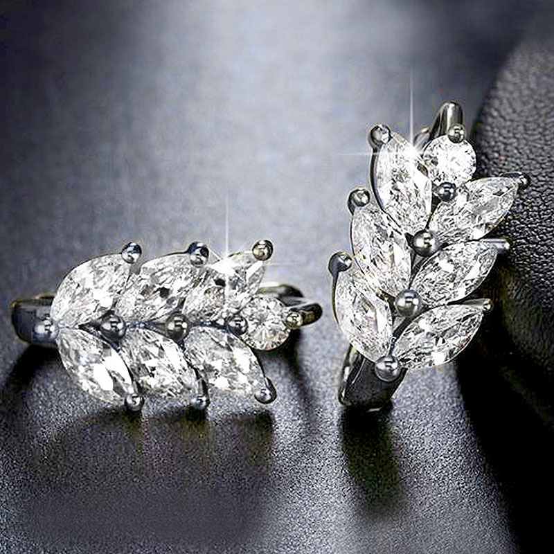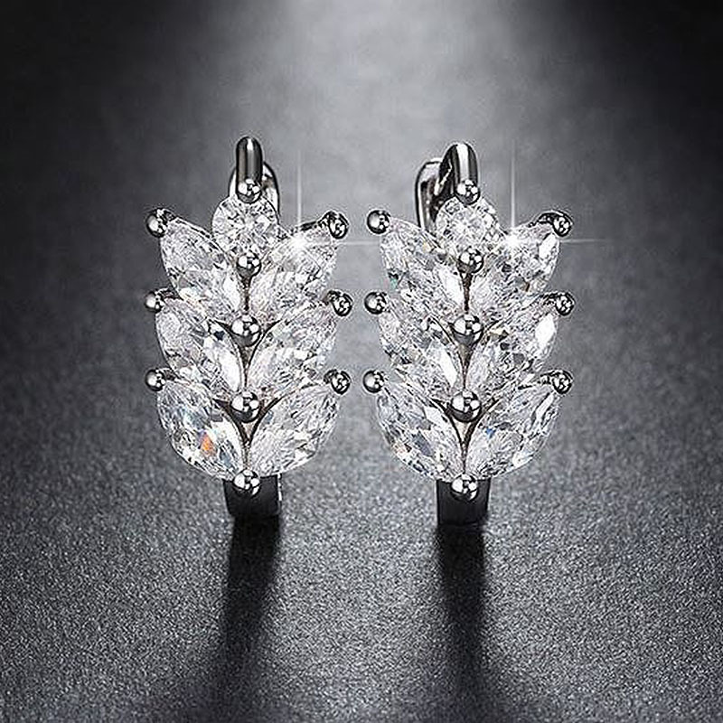 Hot selling earrings fashion diamond leaf earrings for women temperament wheat ear zircon ear clips manufacturers supply