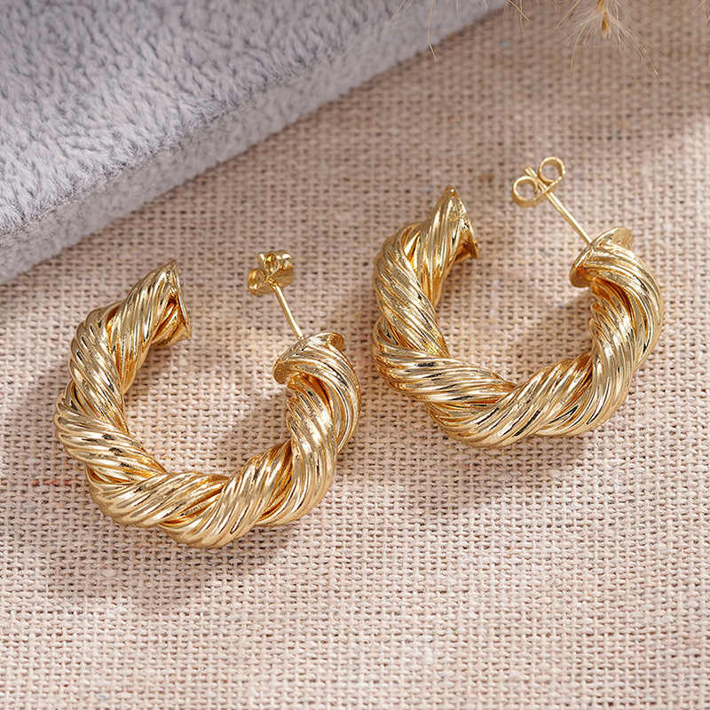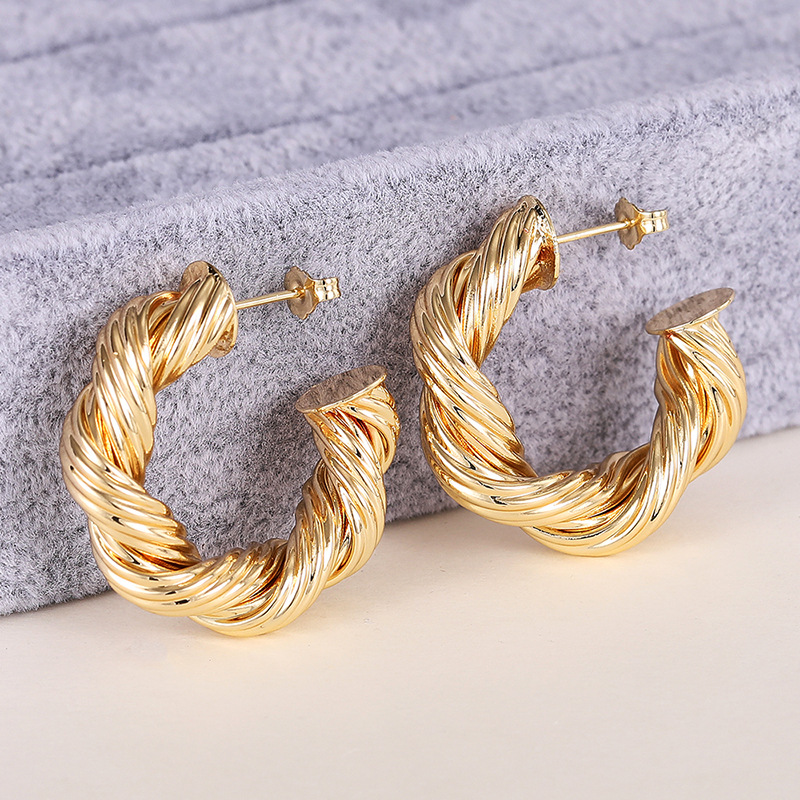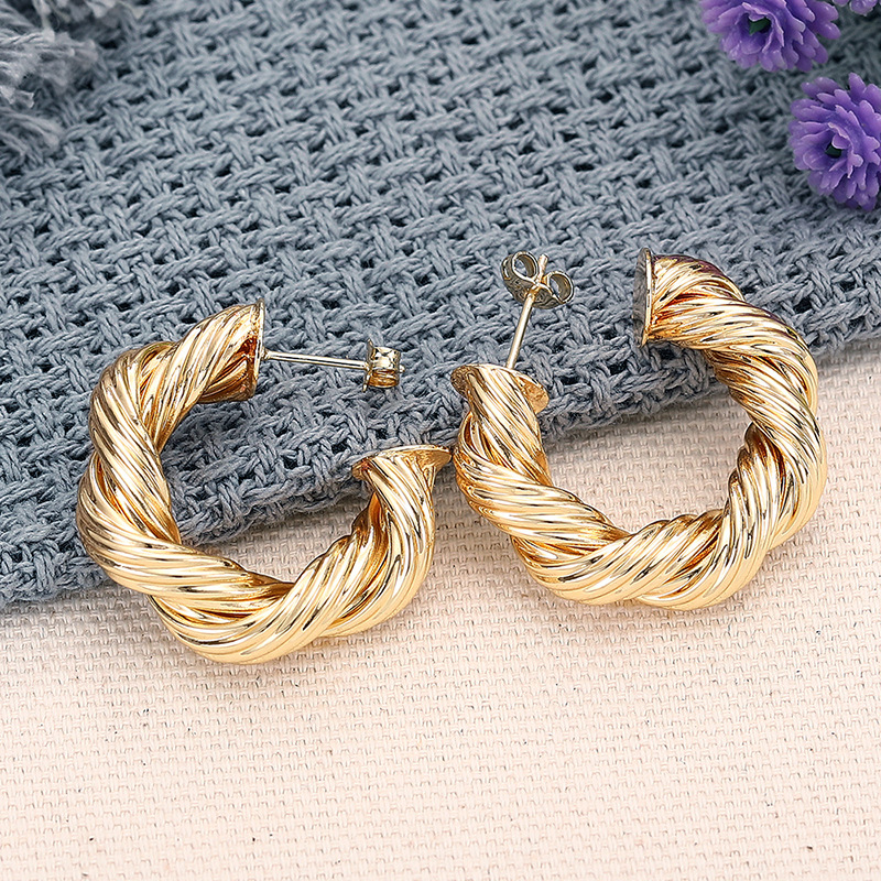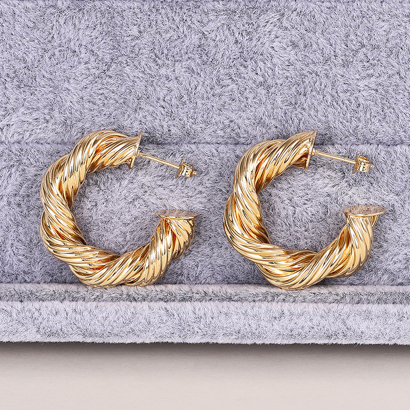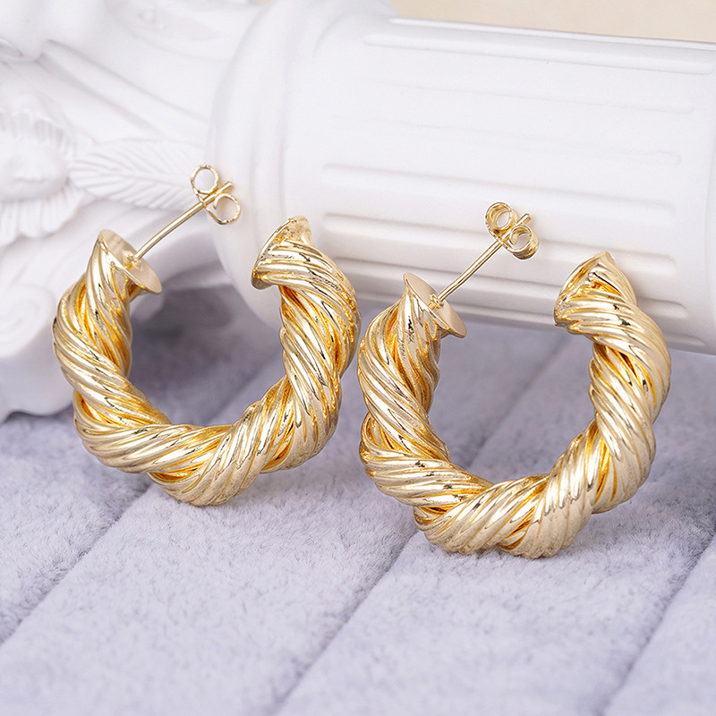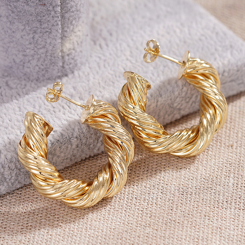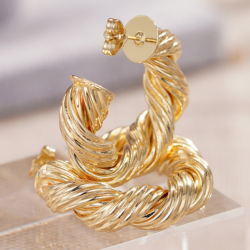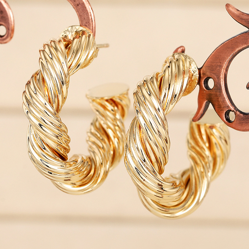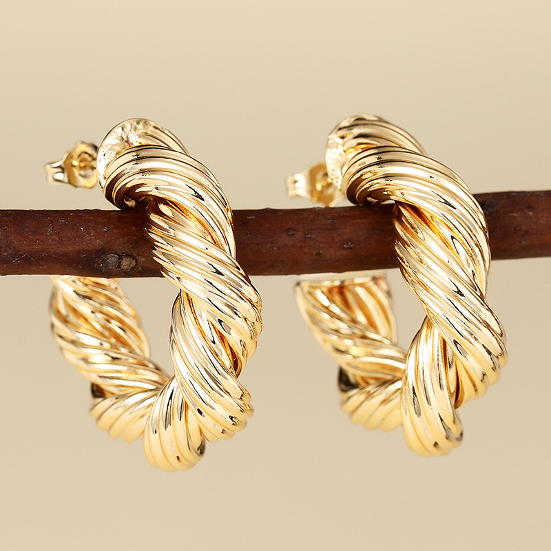 Hot selling earrings for women with metal spiral braided stripe design and heavy twist texture jewelry