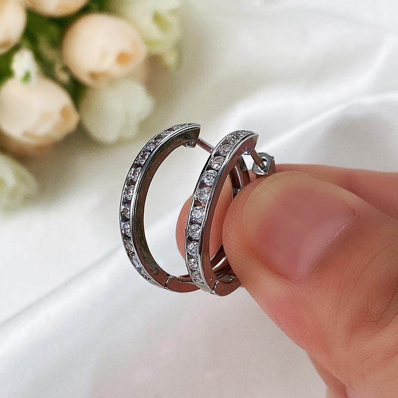 Hot selling earrings silver zircon earrings elegant hoop earrings birthday gift for girlfriend