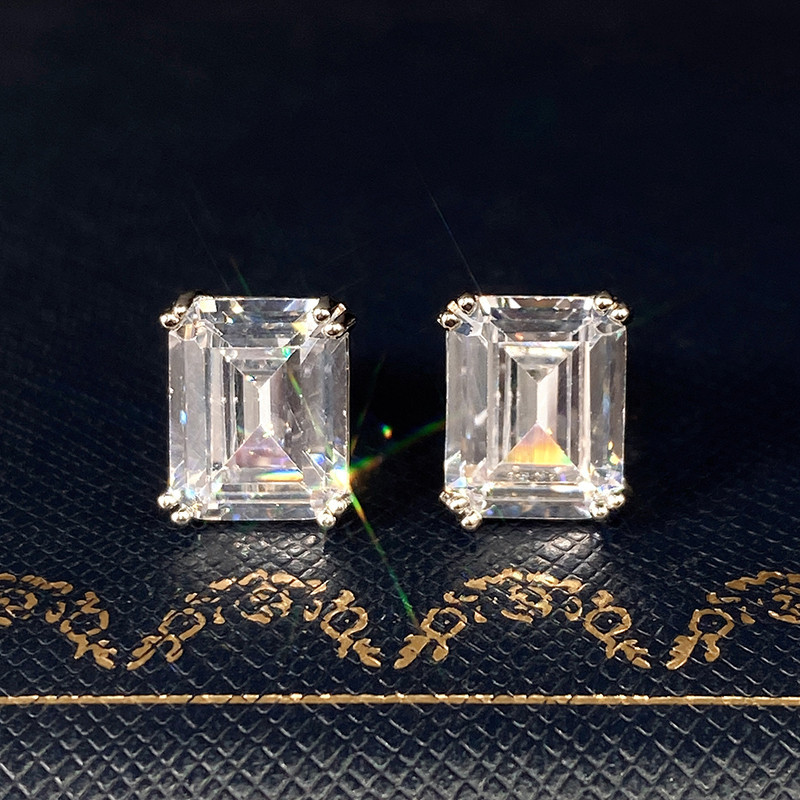 Hot-selling earrings, super shiny 8*10 rectangular zircon earrings, simple unisex earrings