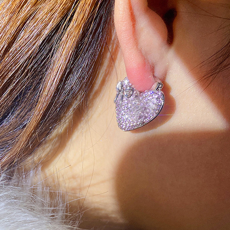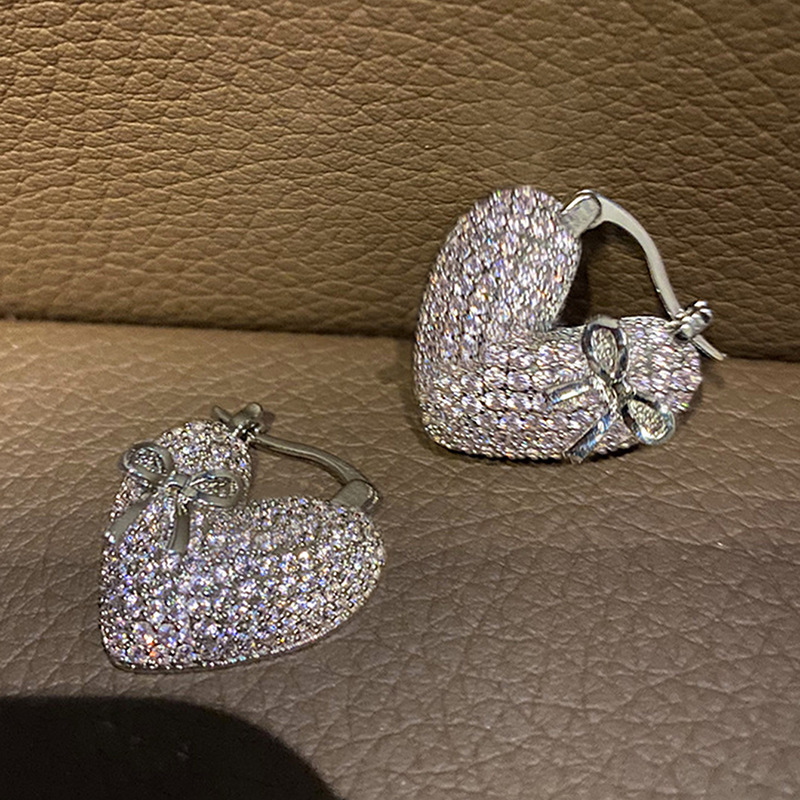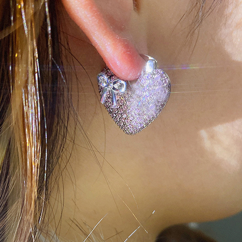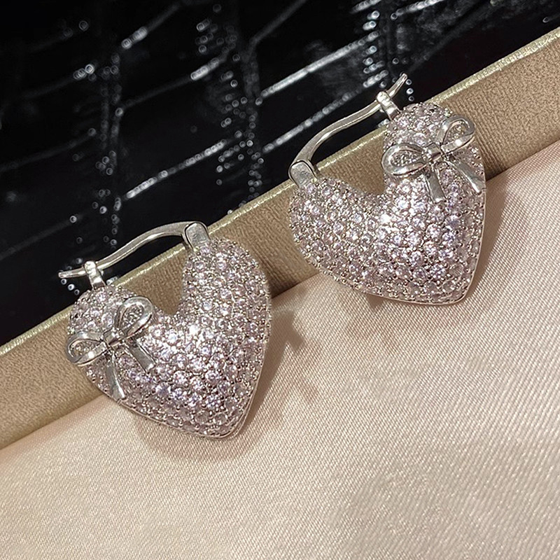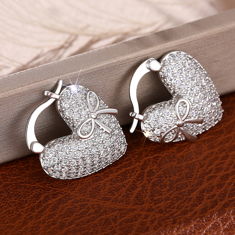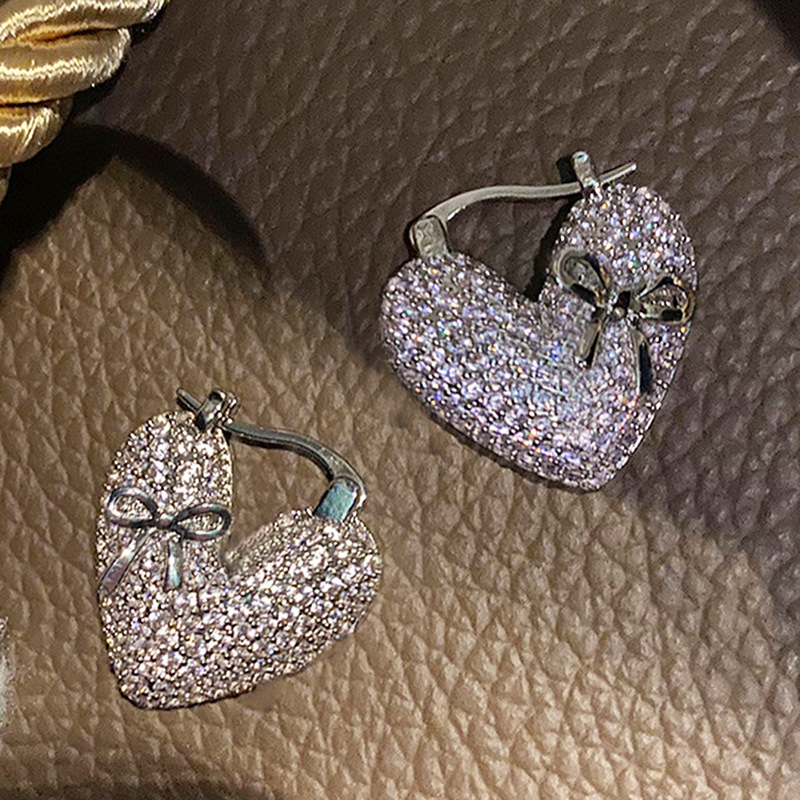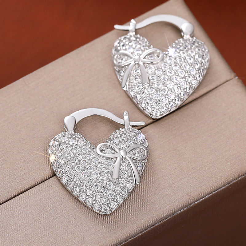 Hot selling earrings with full inlay, fashionable and elegant bow heart earrings, light luxury women's earrings