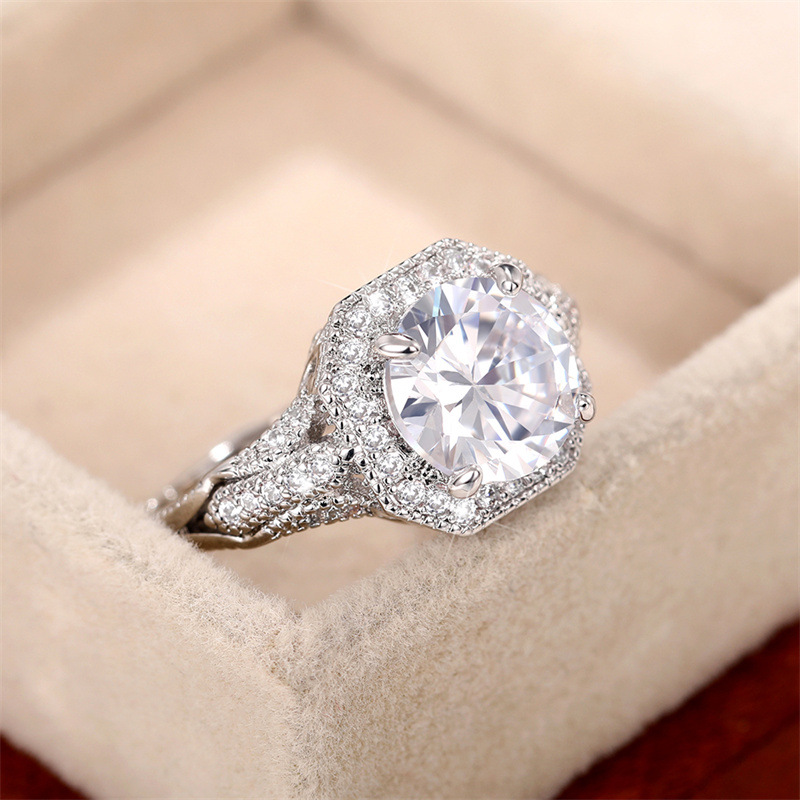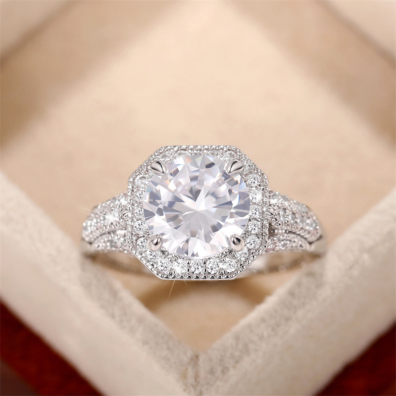 Micro-inlaid celebrity style classic all-match popular ring six-claw zircon wedding ring European and American style light luxury ring