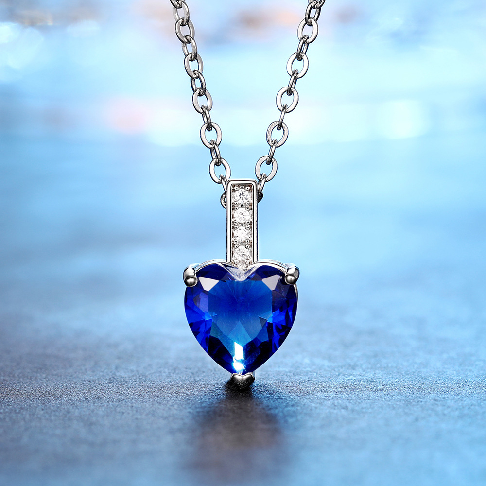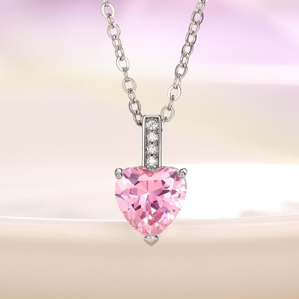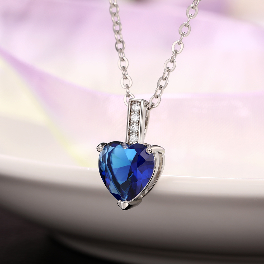 Hot selling European and American colored gemstone heart-shaped zircon necklace fashion love pendant O-shaped chain necklace