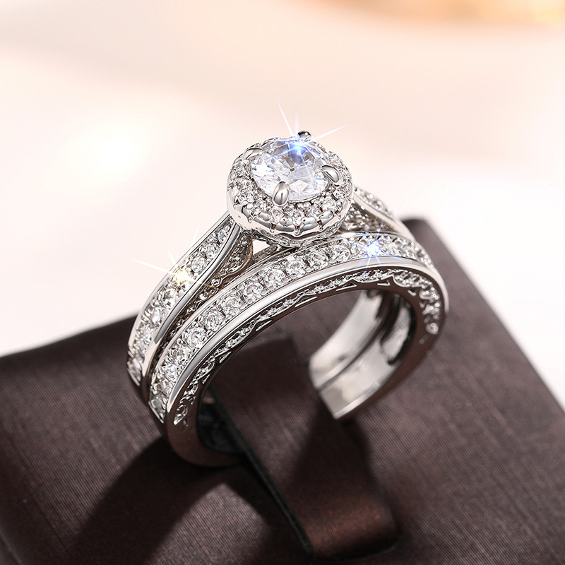 Micro-inlaid celebrity style classic all-match popular ring six-claw zircon wedding ring European and American style light luxury ring