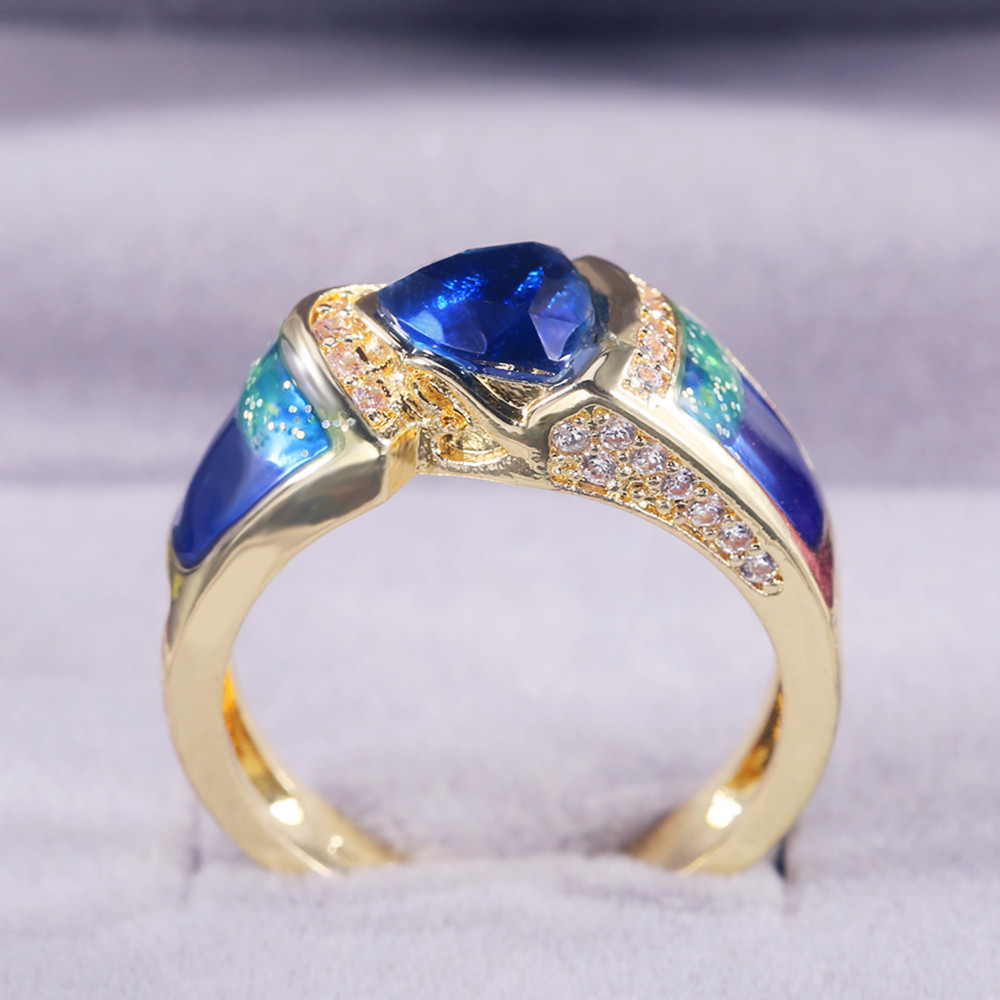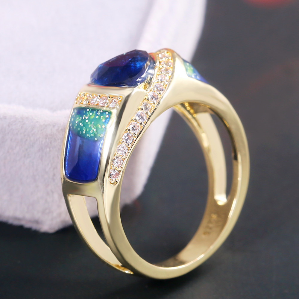 Hot selling European and American fashion blue gemstone inlaid zirconium diamond ring retro design jewelry