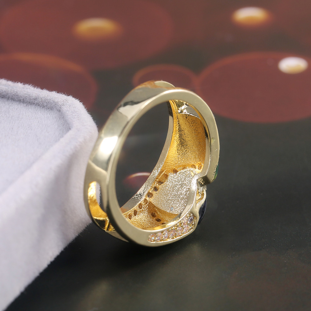 European and American luxury design ring fashionable temperament horse eye zircon ring multi-layer hollow design index finger ring
