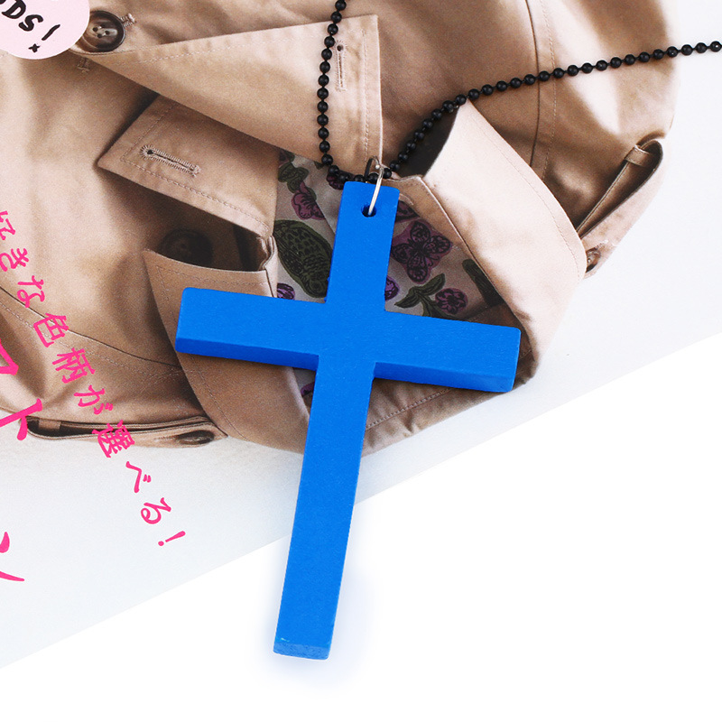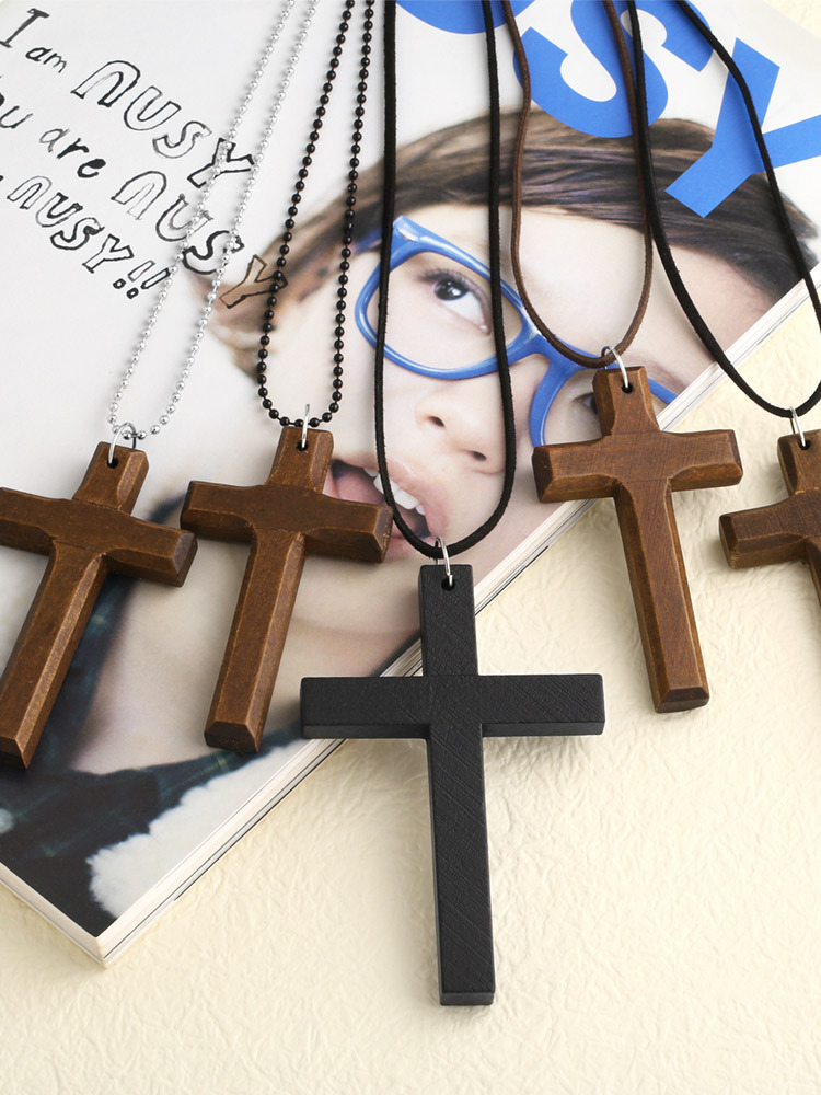 Hot selling European and American fashion cross necklace wooden simple versatile sweater chain accessories nkd44