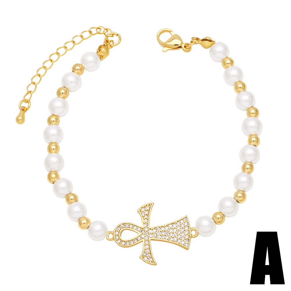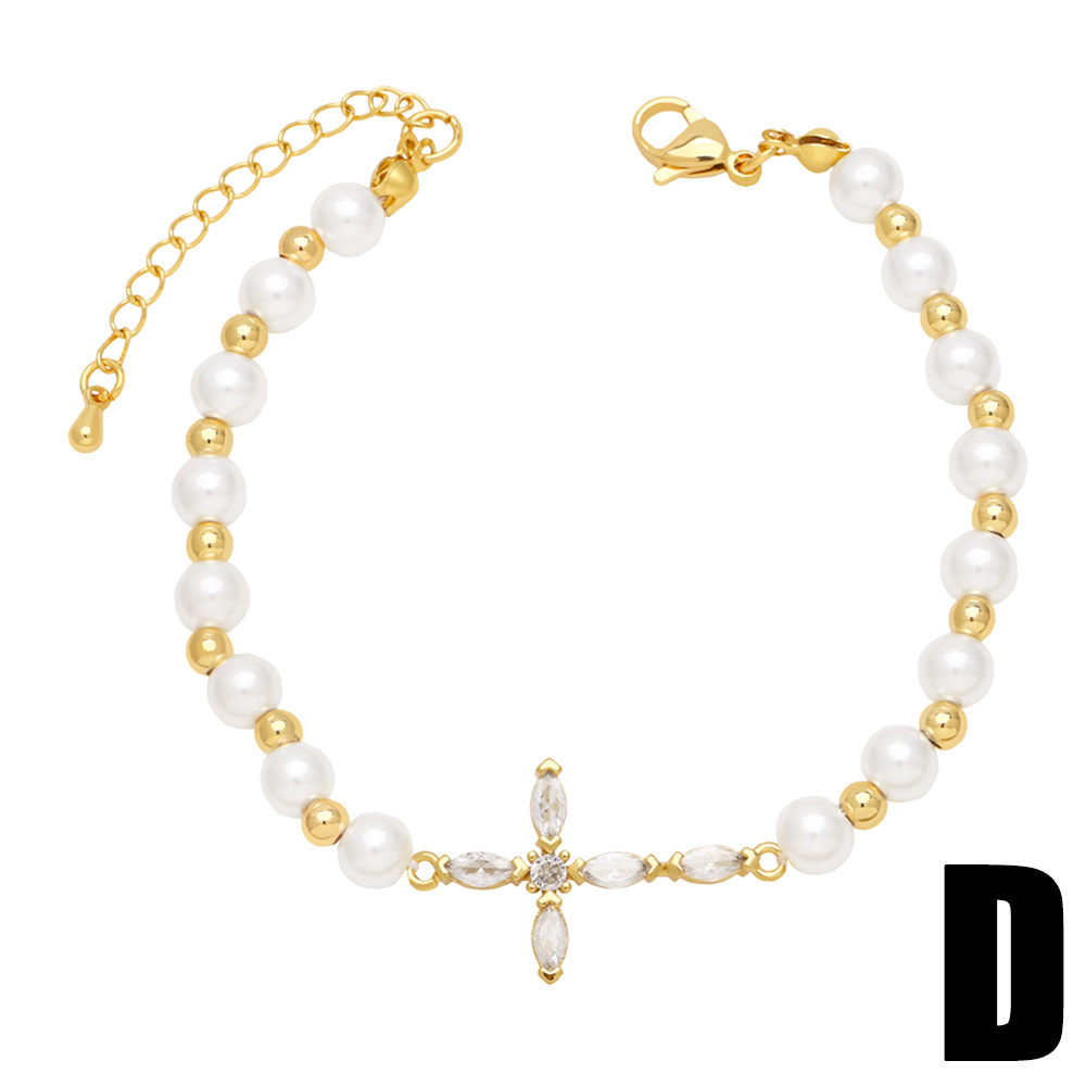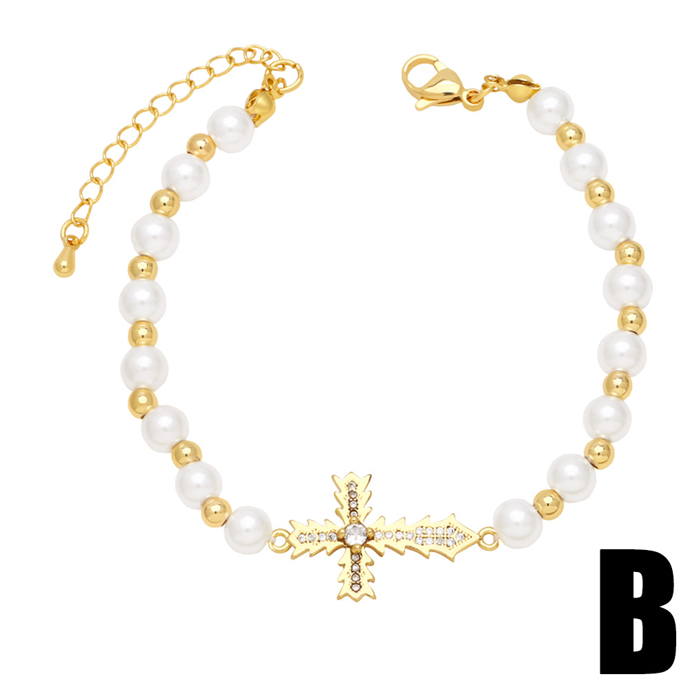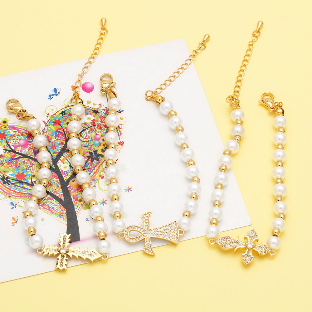 Hot selling European and American fashion personality imitation pearl cross bracelet women light luxury high-end hand jewelry bre72
