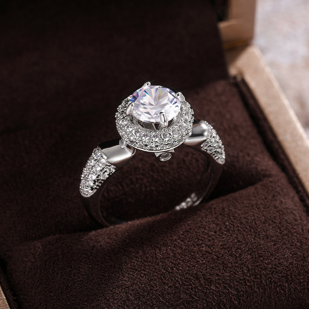 Micro-inlaid celebrity style classic all-match popular ring six-claw zircon wedding ring European and American style light luxury ring