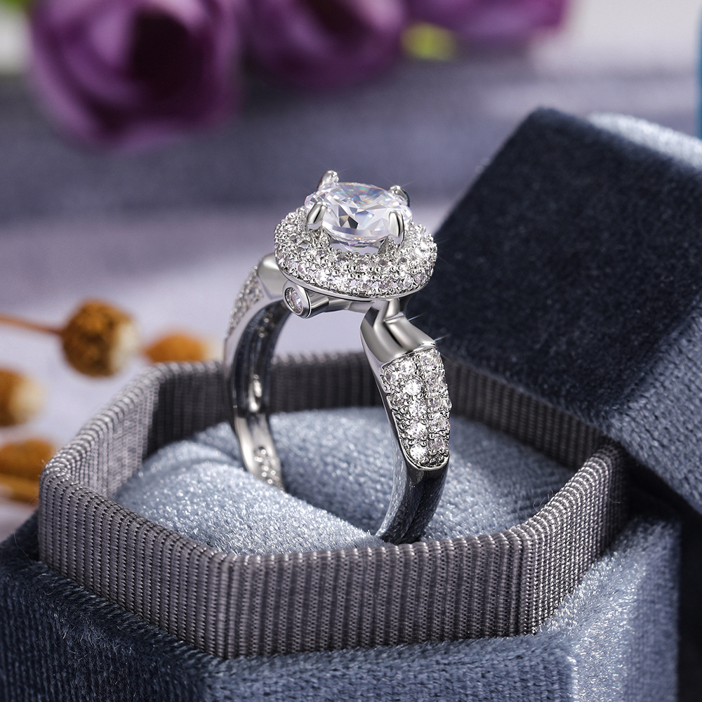 Hot selling European and American fashion sparkling diamond round women's ring noble zircon wedding ring proposal jewelry