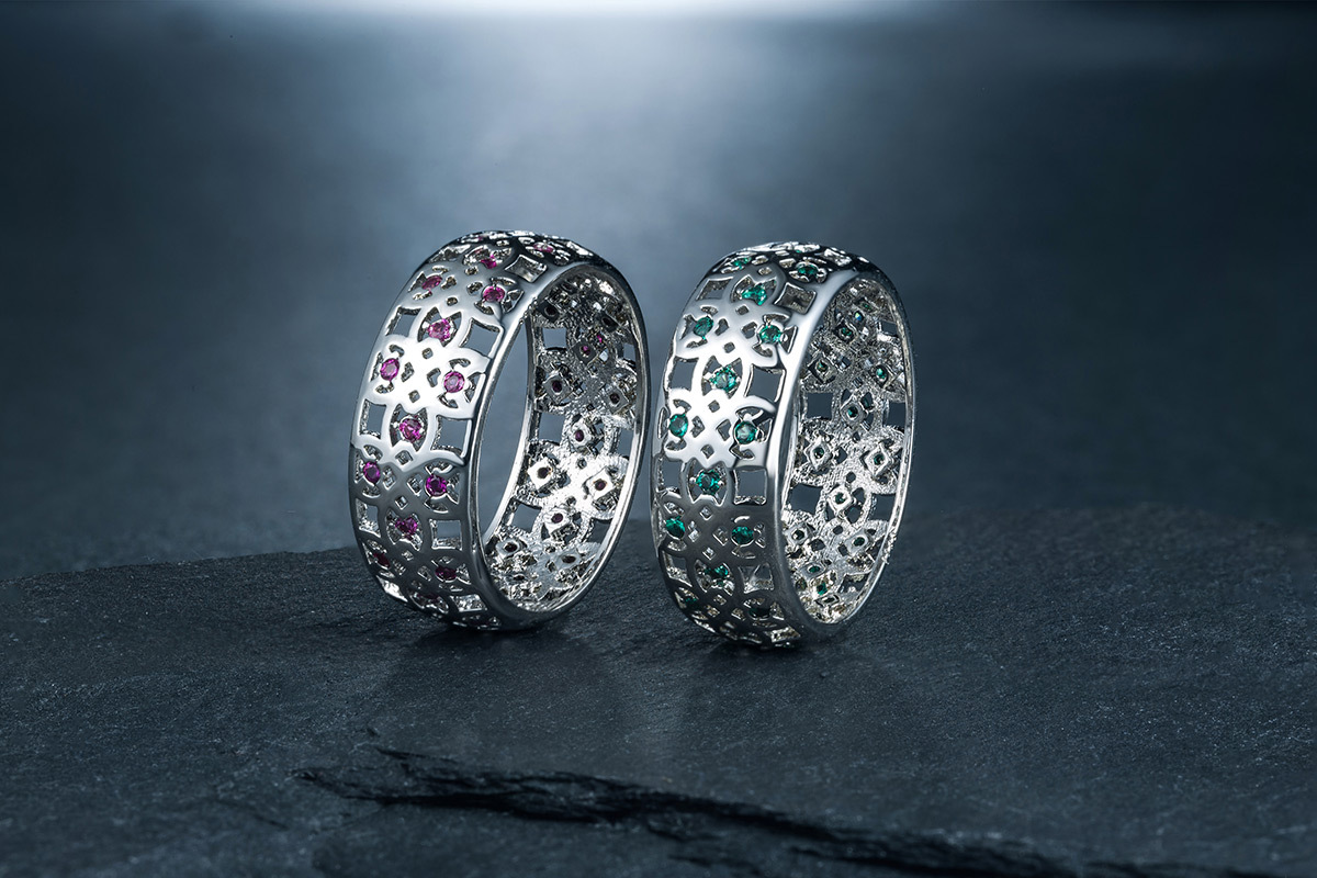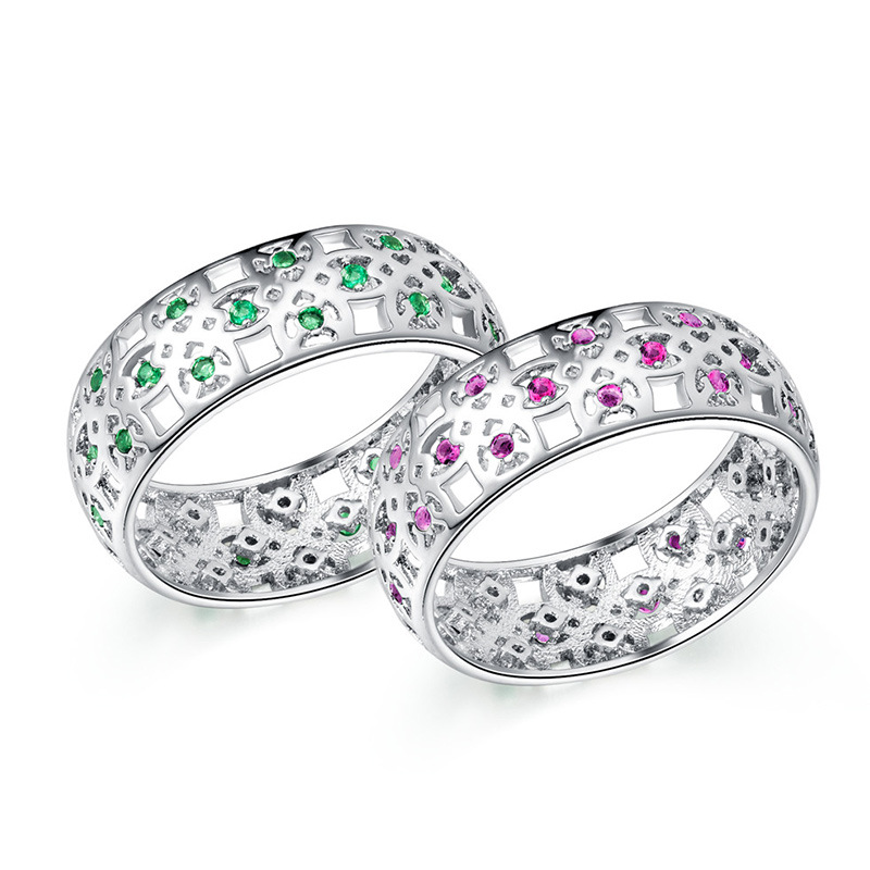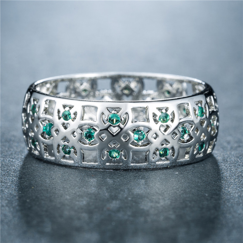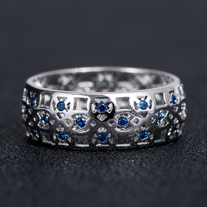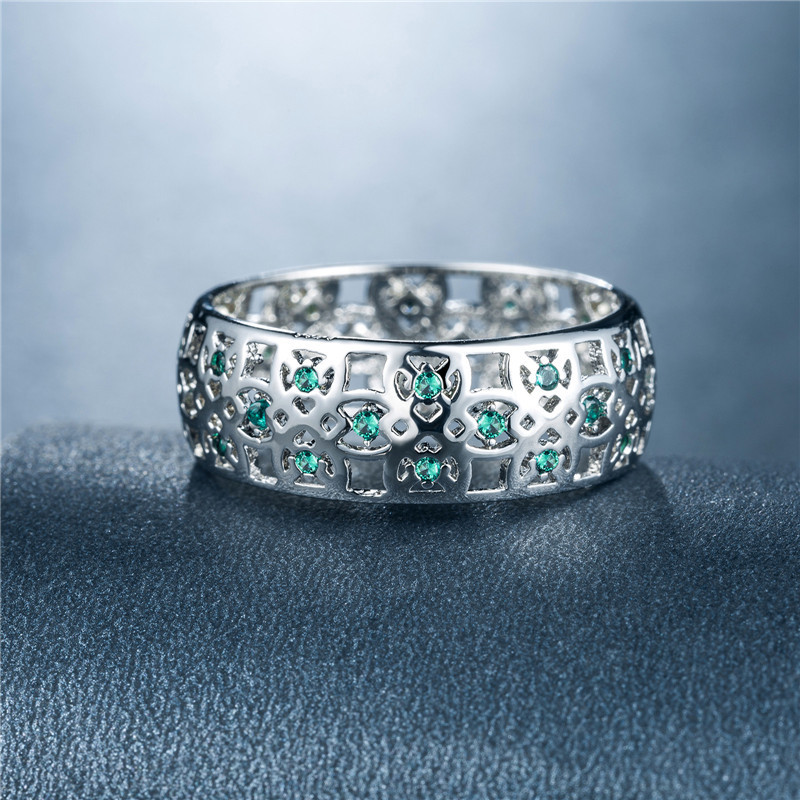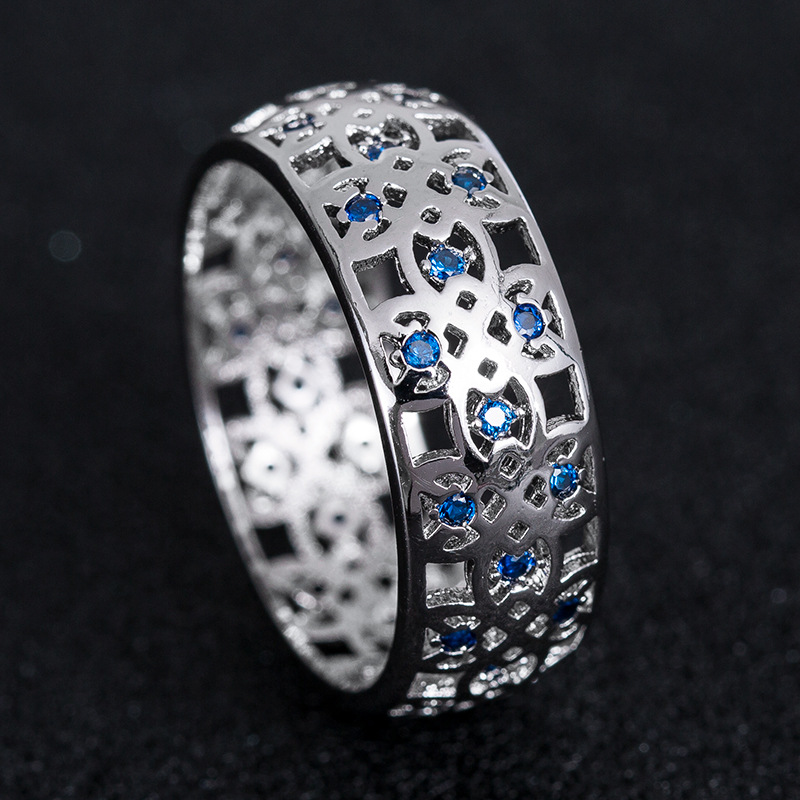Hot-selling European and American fashion women's hollow ring copper plated with white gold micro-inlaid zircon jewelry