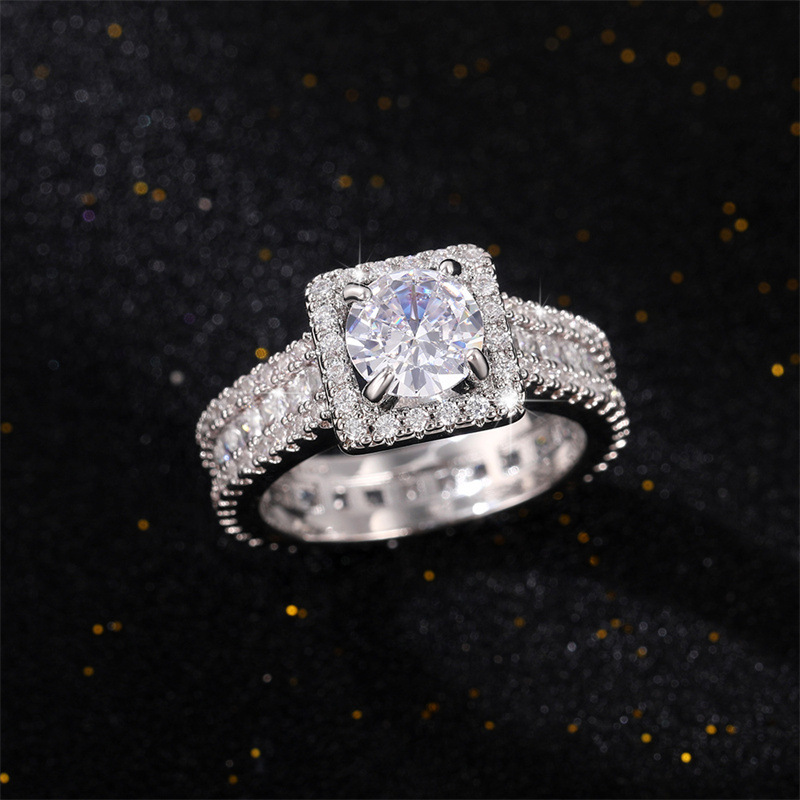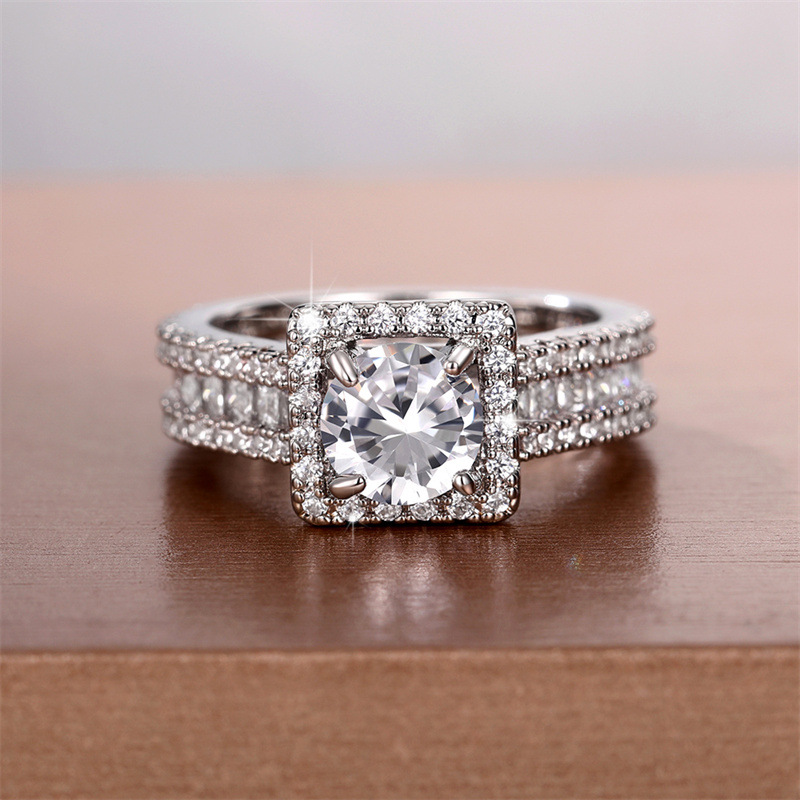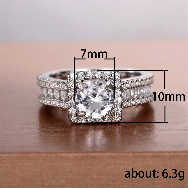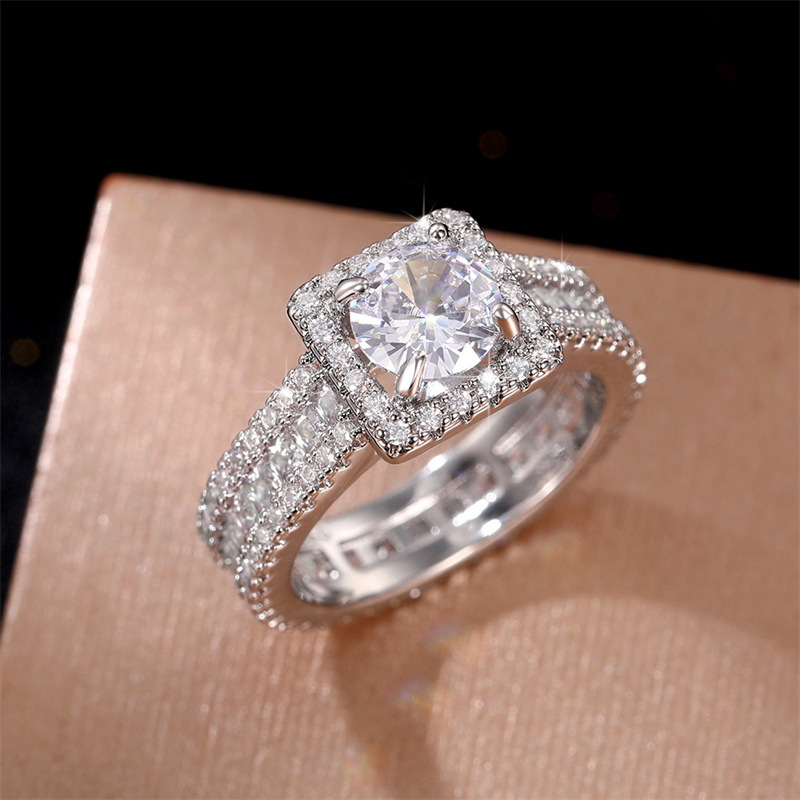 Hot selling European and American fashion zircon engagement rings for women, square and round diamond zircon rings