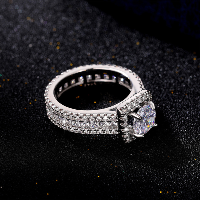 Micro-inlaid celebrity style classic all-match popular ring six-claw zircon wedding ring European and American style light luxury ring