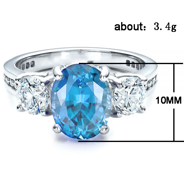 Hot-selling European and American jewelry, fashionable blue zircon women's rings, wholesale direct sales